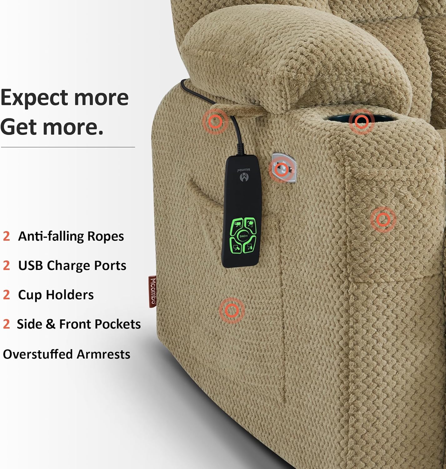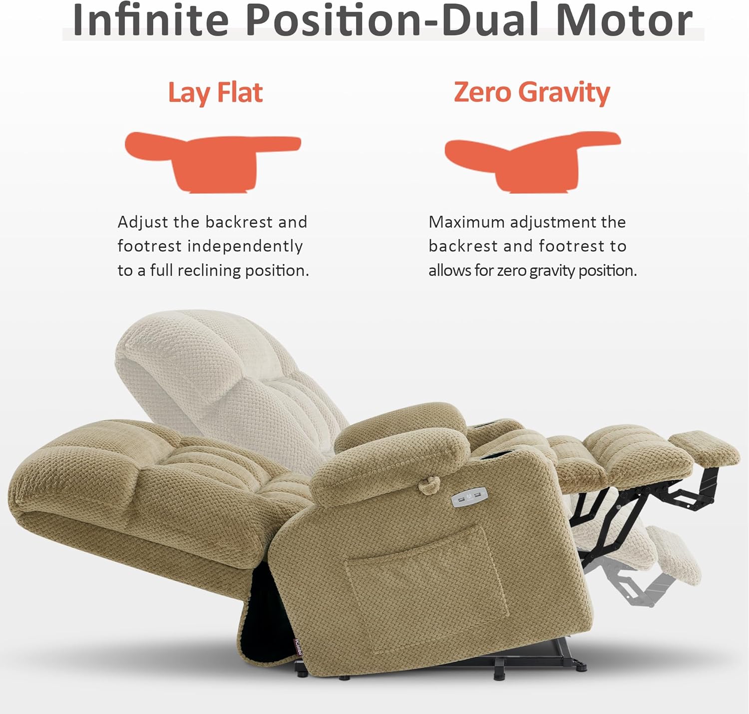USB Charging Ports & Cup Holders: The dual USB ports and cup holders in the recliner will allow you to put your drink on the cup holder and charge your mobile devices all while enjoying a movie or enjoying your favorite apps