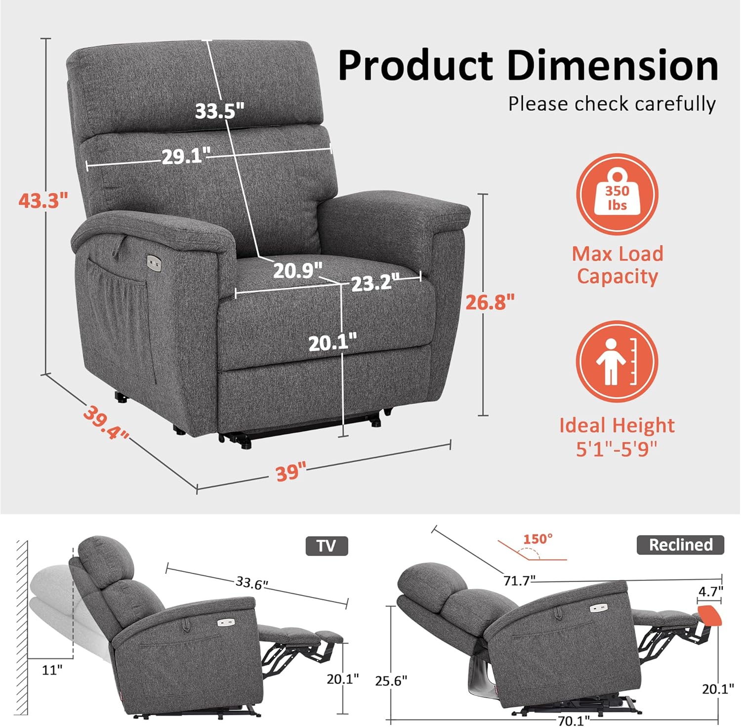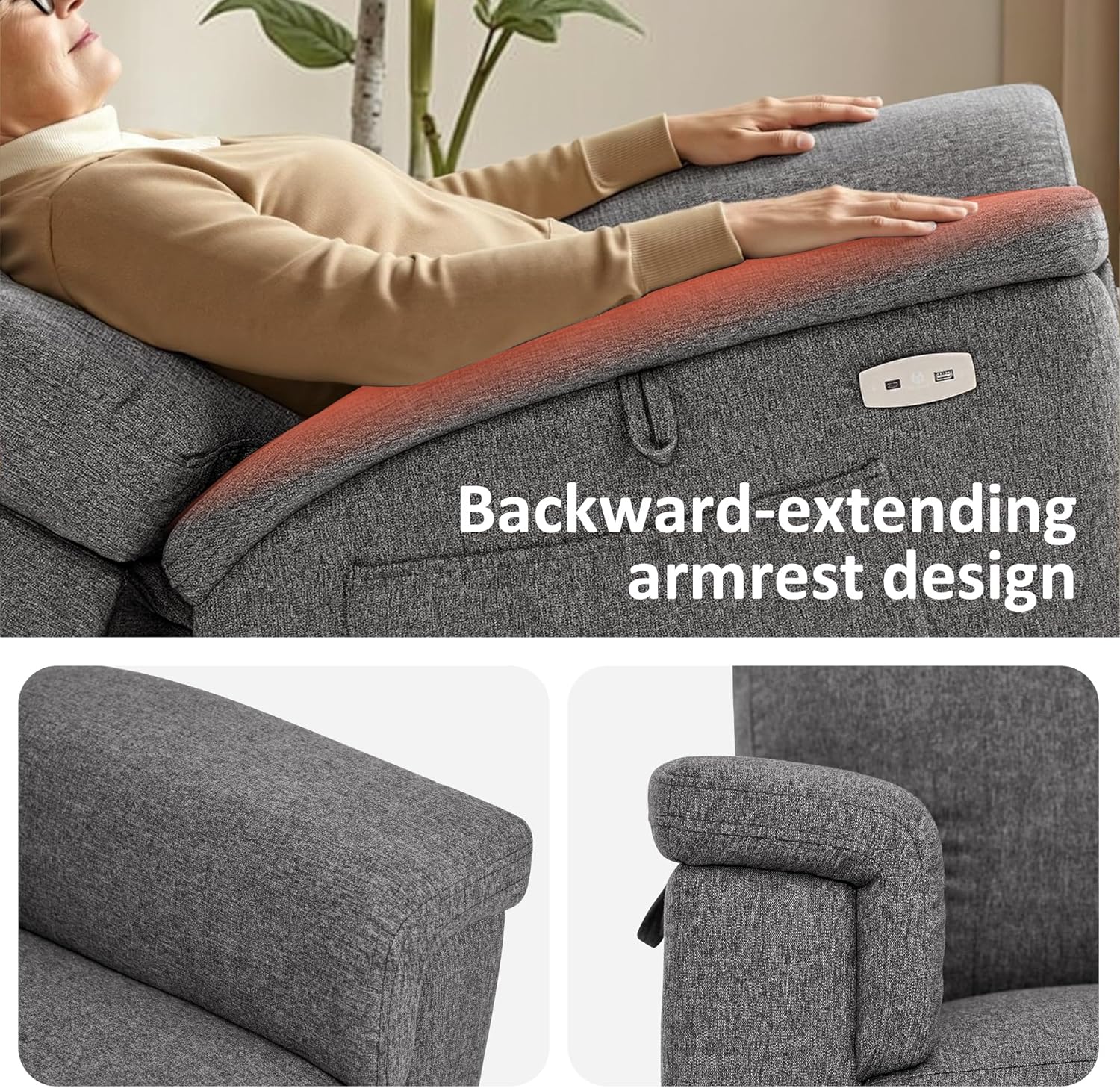 Square Sloped Armrest: Backward-leaning armrests provide good support for your arms while you reclining. Square inward sloped armrest design makes them more ergonomic and brings a more natural and comfortable use experience