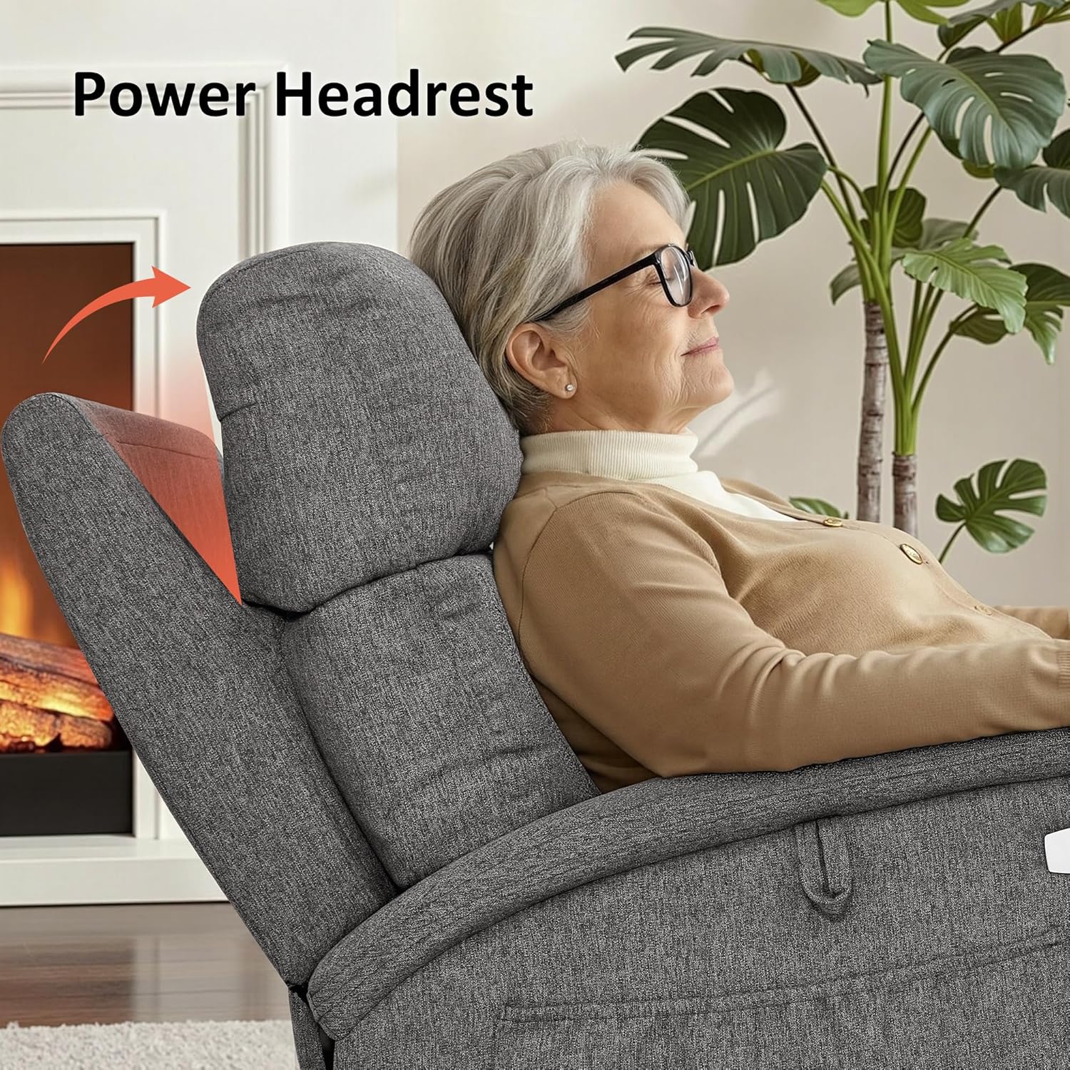 Power Headrest: Adjustable headrests can be used for custom comfort while sitting upright, they are especially designed to allow someone who is reclined back to look forward such as toward the TV without straining the head or neck