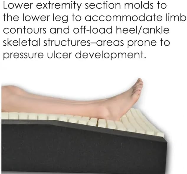 SPECIALIZED ZONES: Includes targeted support areas - head/back support section pelvic T-zone for pressure relief and lower extremity section for heel offloading.