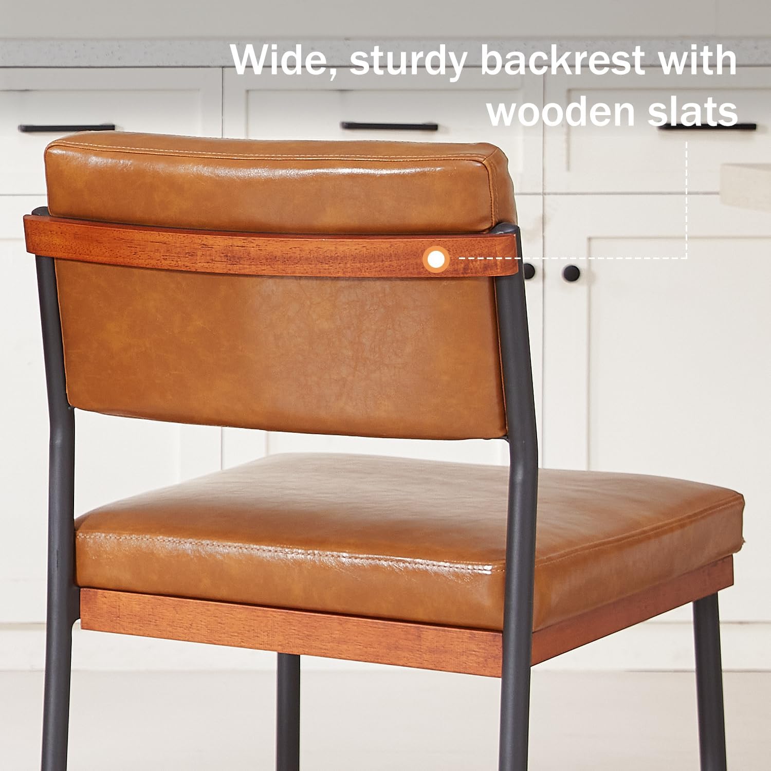 Perfect Fit & Easy Care Designed for real homes, each chair measures 36"H x 18.9"W x 19.7"D, featuring a wide 17.5 backrest for ample comfort. The high-quality, skin-friendly faux leather seat only needs a quick wipe with a damp cloth to stay clean, making it ideal for busy households.