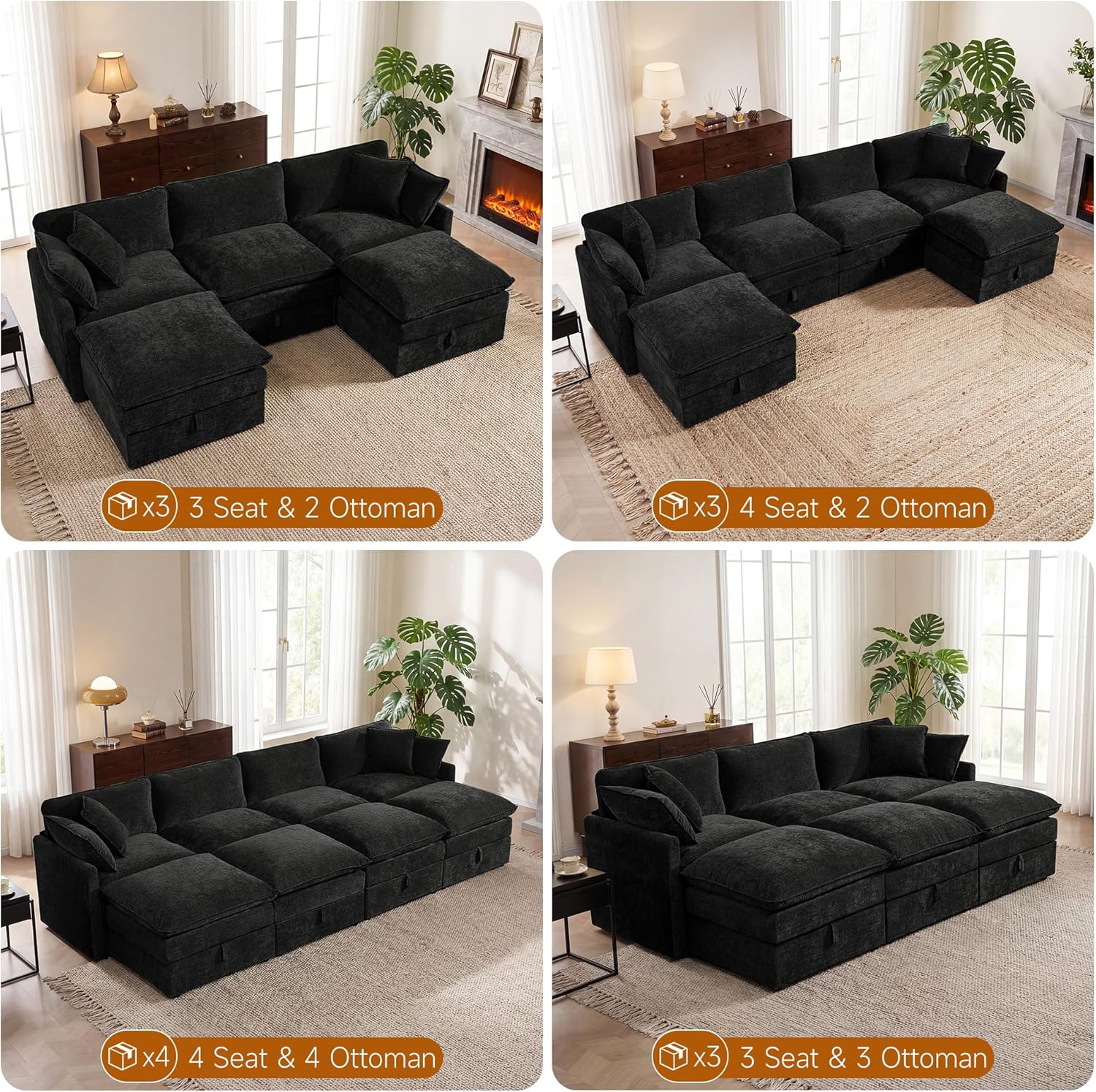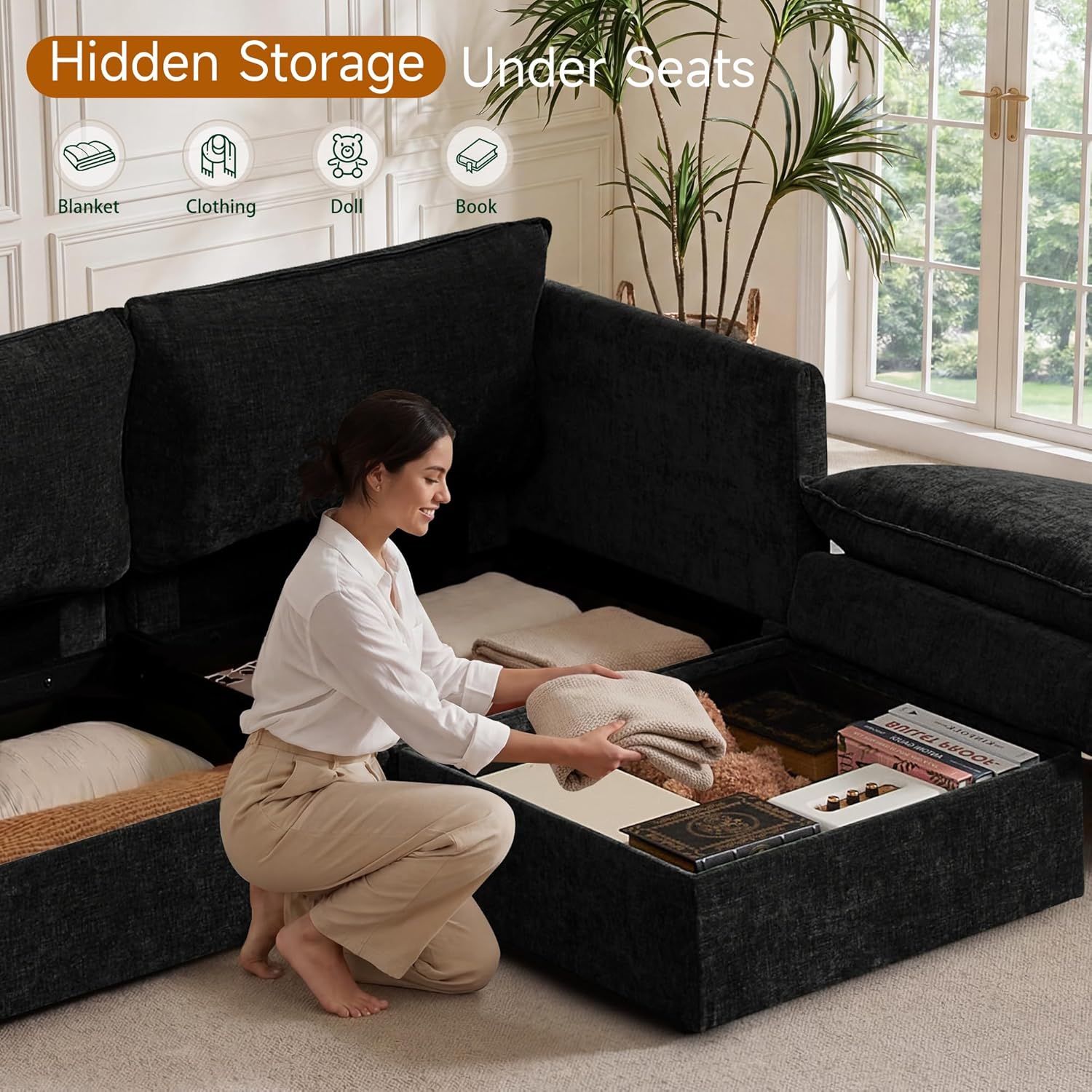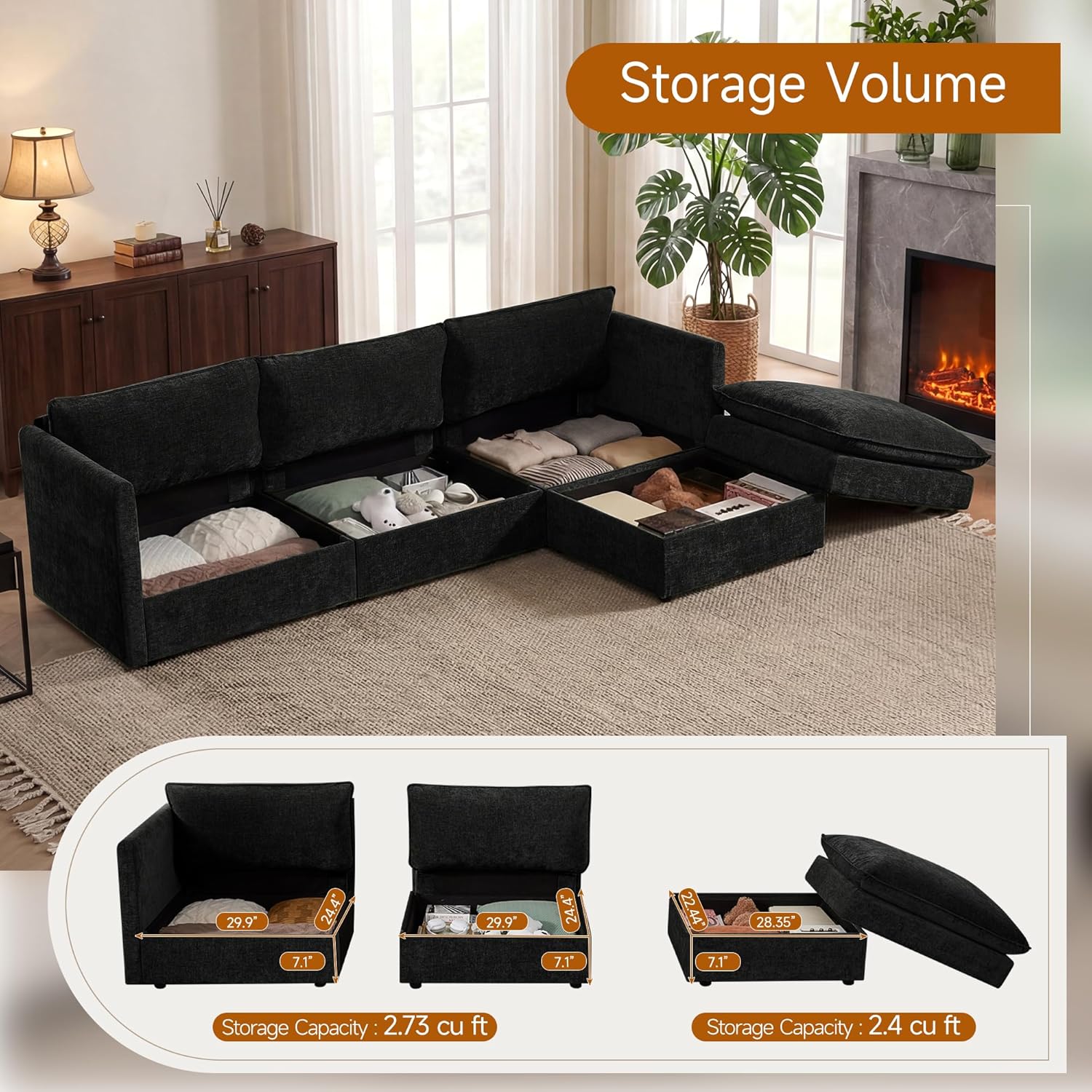 Design Your Perfect Layout: Embrace flexibility with this modular sectional sofa. Arrange the pieces to suit your space and needs, and enjoy the added bonus of a practical Fabric Sectional with Storage, expertly crafted in soft, durable chenille