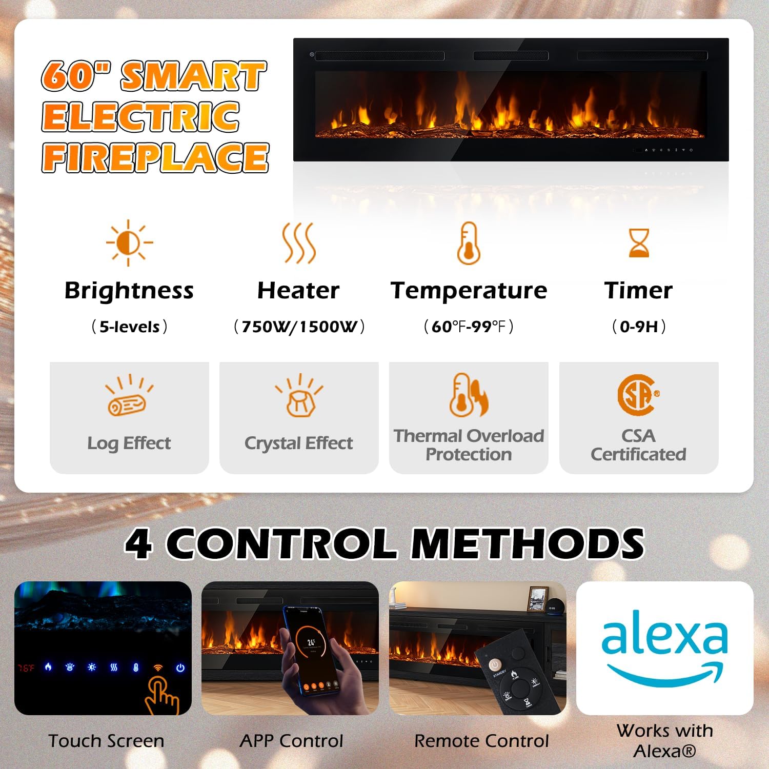 Immersive & Customizable Ambiance: Enjoy the cozy warmth and captivating visual display of lifelike 3D flames and glowing logswithout the mess or maintenance of a real fire. Personalize your space with 12 vibrant LED color options and 5 adjustable flame brightness levels. Set your perfect temperature (62F82F) and program the auto-shutdown timer for up to 9 hours of worry-free operation