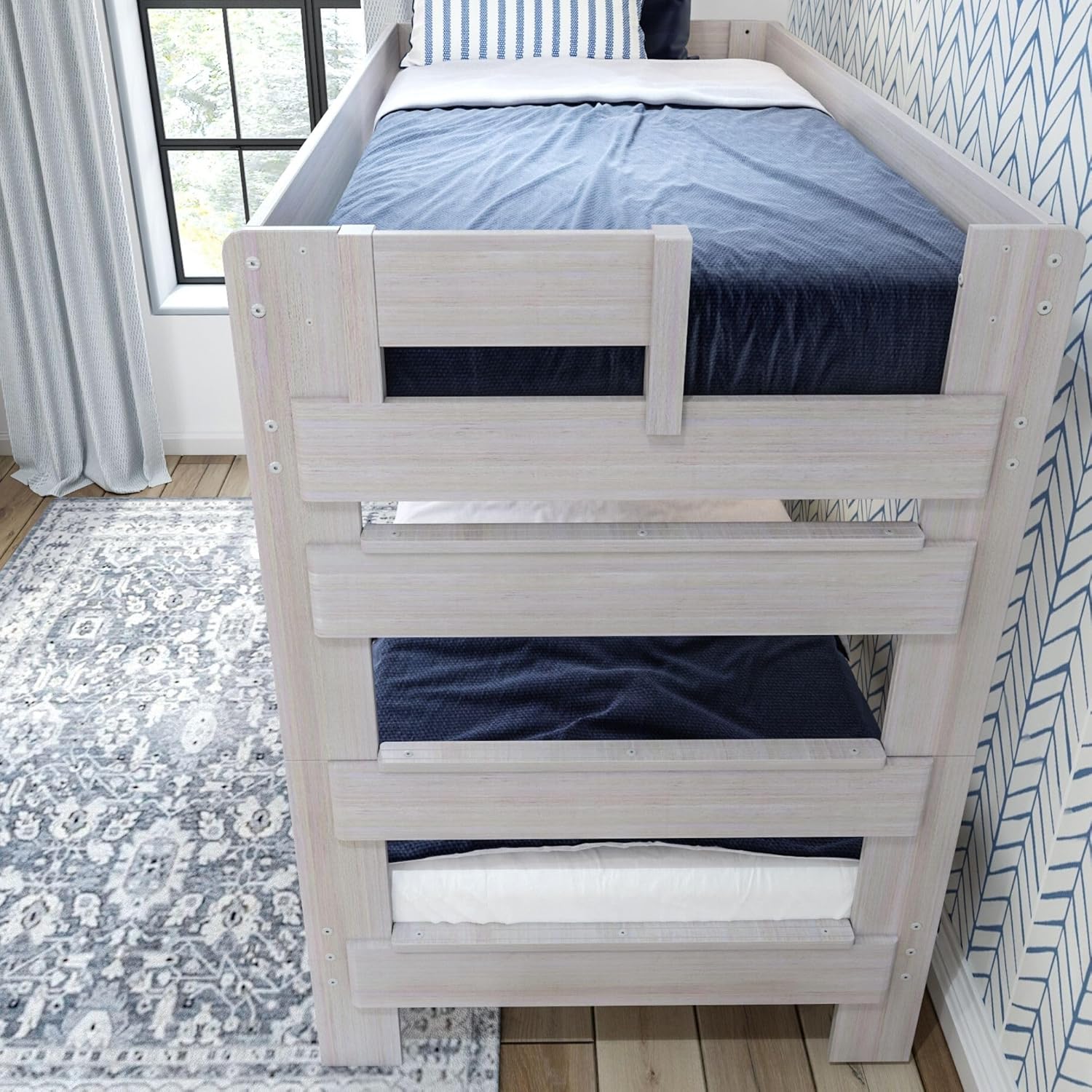 • Rustic Wood Bunk Bed, Solid Wood Twin-Over-Twin Bed Frame, Heavy-Duty Bunk Bed for Adults, No Box Spring Needed, White Wash