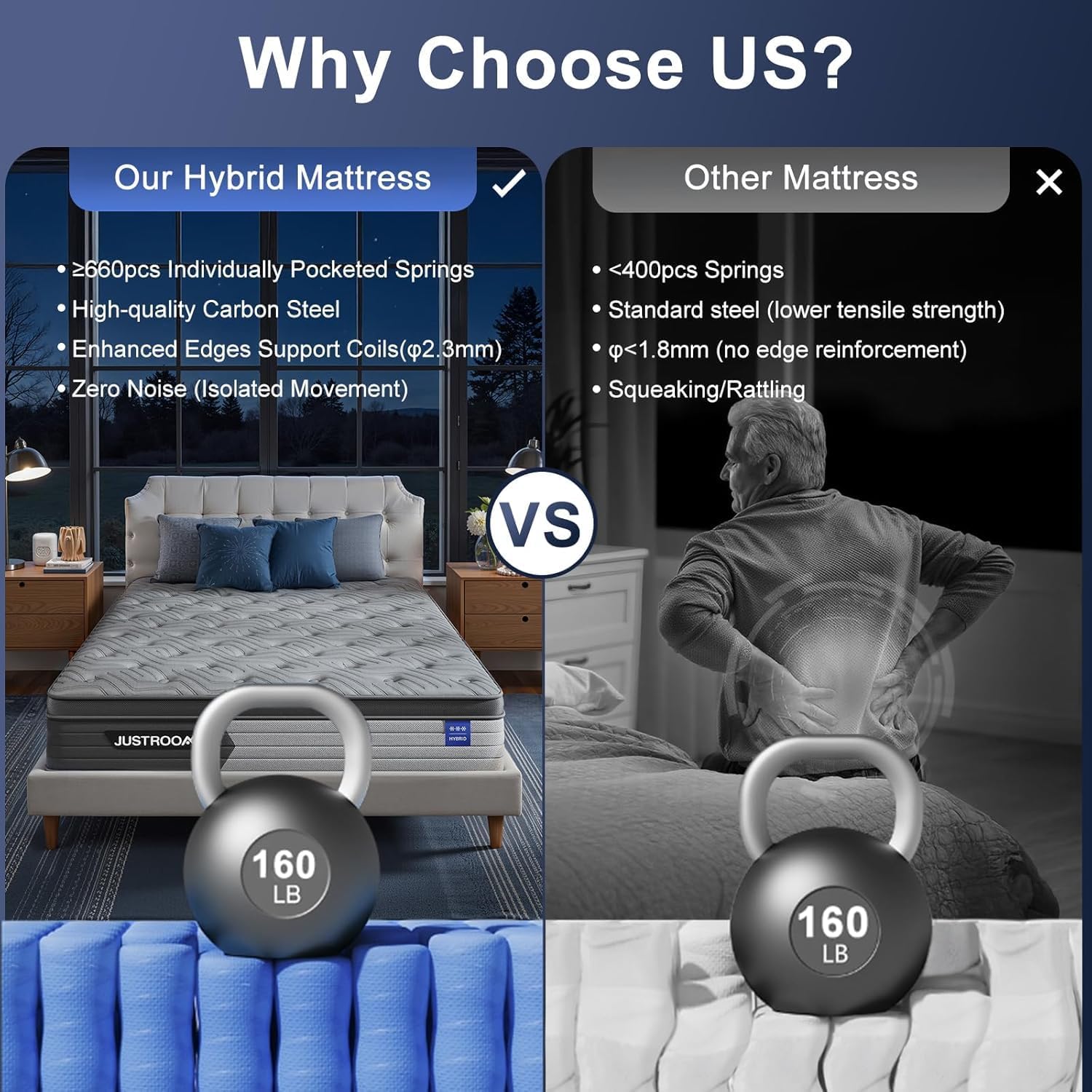 Certified Safety & Durability: Rest assured with certifications from CertiPUR-US, OEKO-TEX, and ISPA. This fiberglass-free hybrid mattress is built with high-quality materials and hundreds of durable carbon steel springs, ensuring lasting support, quiet resilience, and a healthy sleep environment for your family