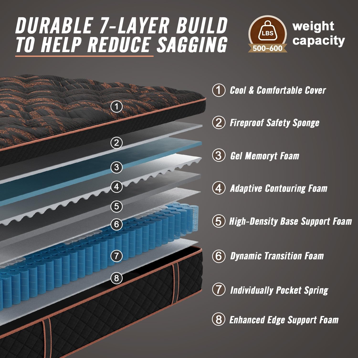 Sleeps Cooler - No More Night Sweats Tired of overheating? Our 3-layer cooling system (breathable cover, copper-infused foam, airflow base) keeps you 4F cooler than regular hybrids and pulls away 83% of nighttime moisture. Stay dry and comfortable all night.