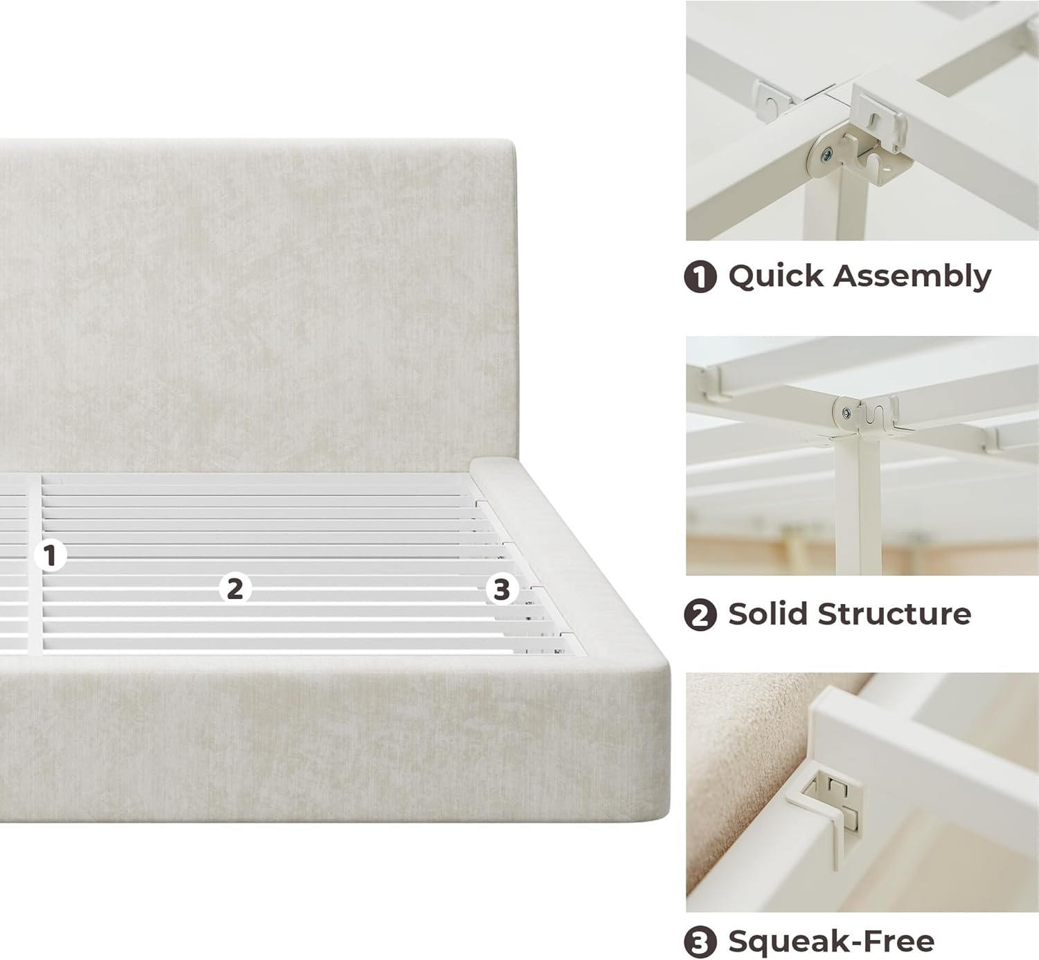 Quiet, Stable, Squeak-Free Support: Engineered with a cold-rolled steel bed frame and non-slip feet, this king bed frame and headboard features silent, stable support for quiet and comfortable nights