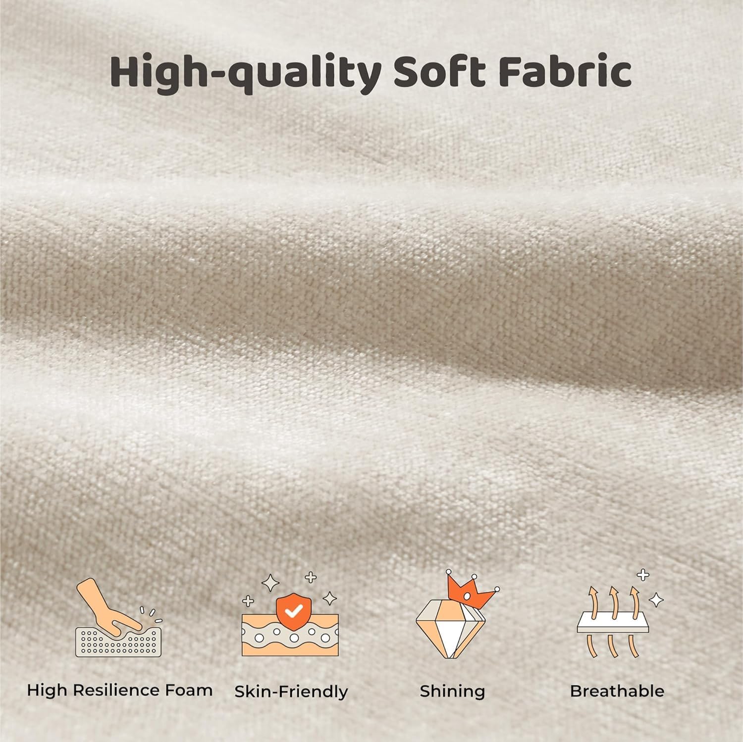 Beige: a light, warm neutral fabric. Beige is a plush chenille. Soft to the touch, it resists wrinkles, stays structured, and remains durable for lasting use