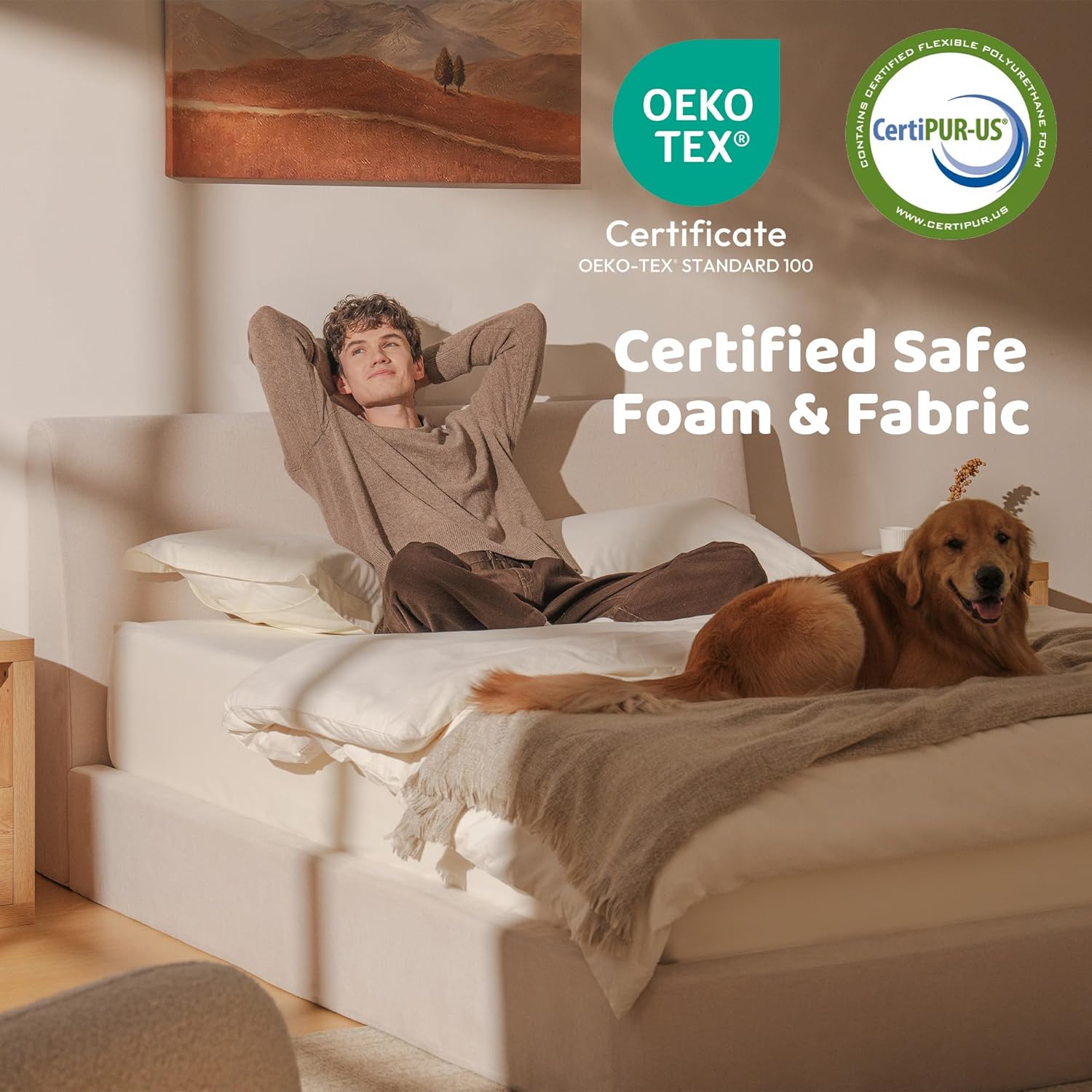 Certified Safe, Skin-Friendly Materials & Woodless Design: Made with CertiPUR-US foam, OEKO-TEX fabric, and SGS-tested components, this woodless bed helps reduce material waste and emissionswhile using tested, non-toxic materials for lasting comfort and durability