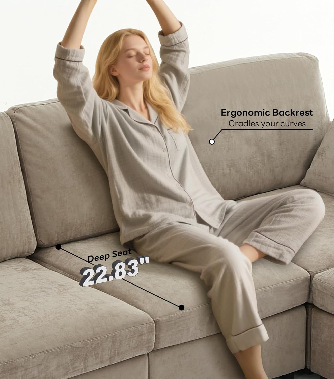 Modular Design on Wood Frame: True modular construction with individual pieces that freely rearrange. Switch from a space-saving L-shape to a party-ready U-shape or a guest bedno tools needed. One sofa fits every life stage, moving with you from apartment to house. Built on a wood frame engineered for repeated reconfiguration without loosening.