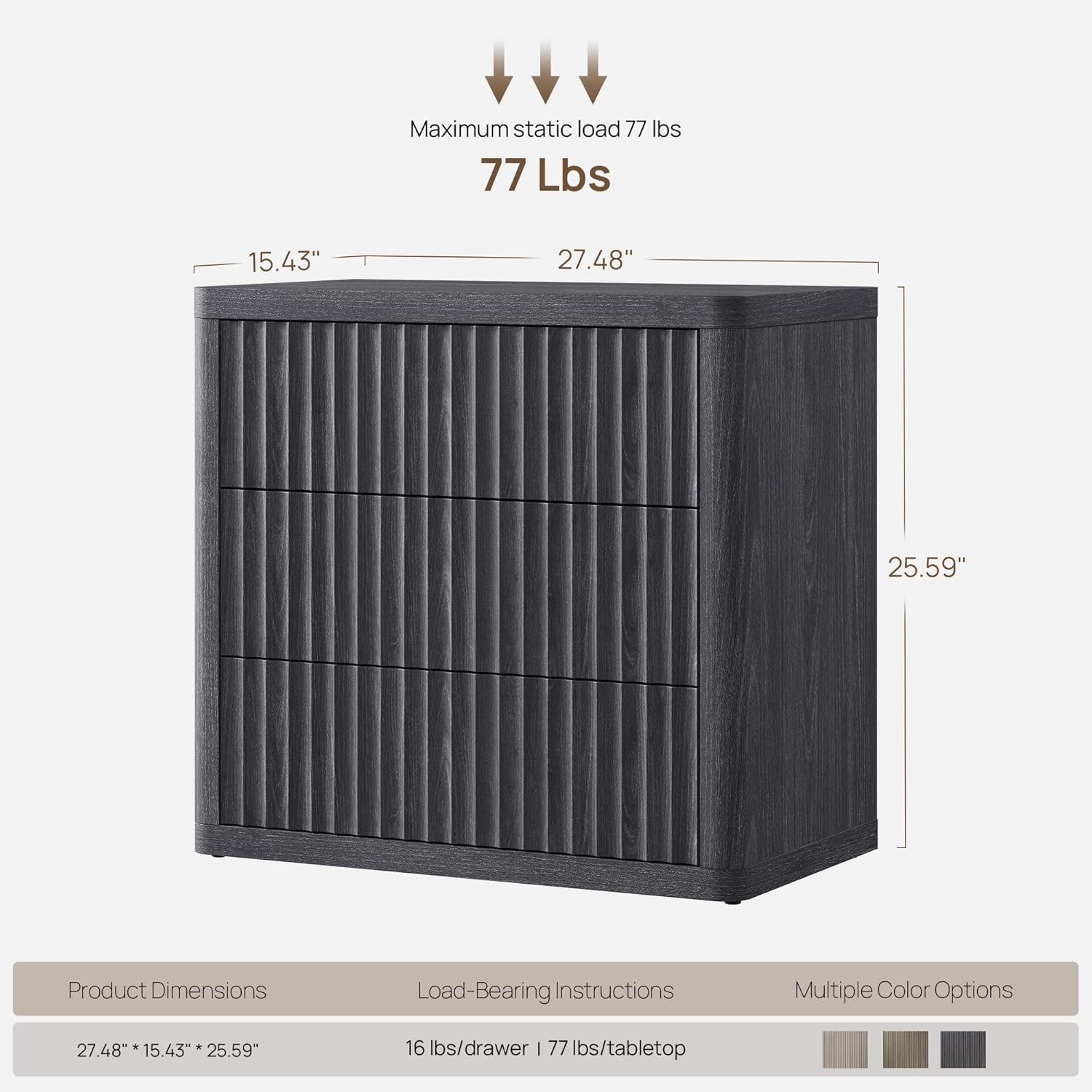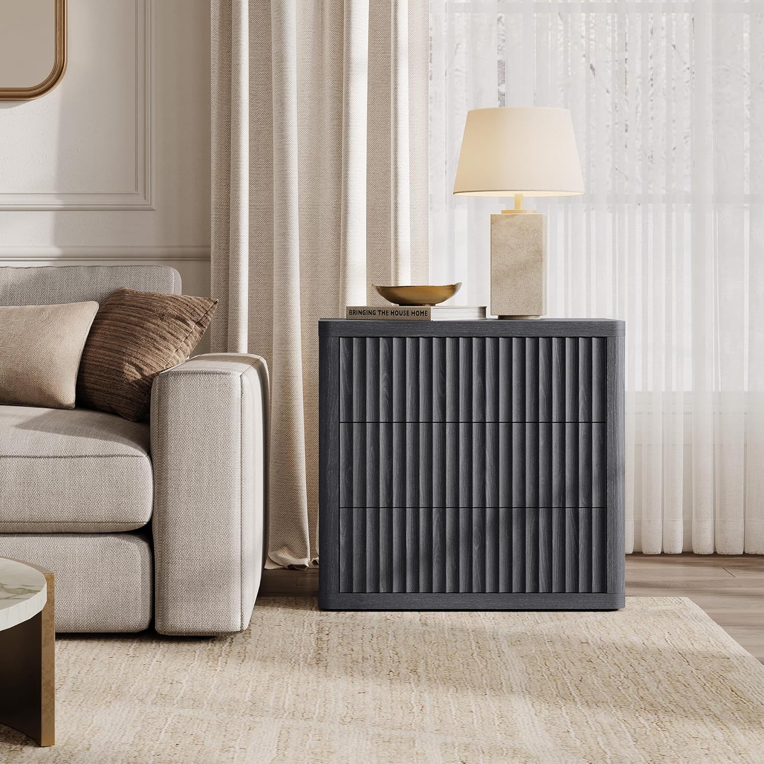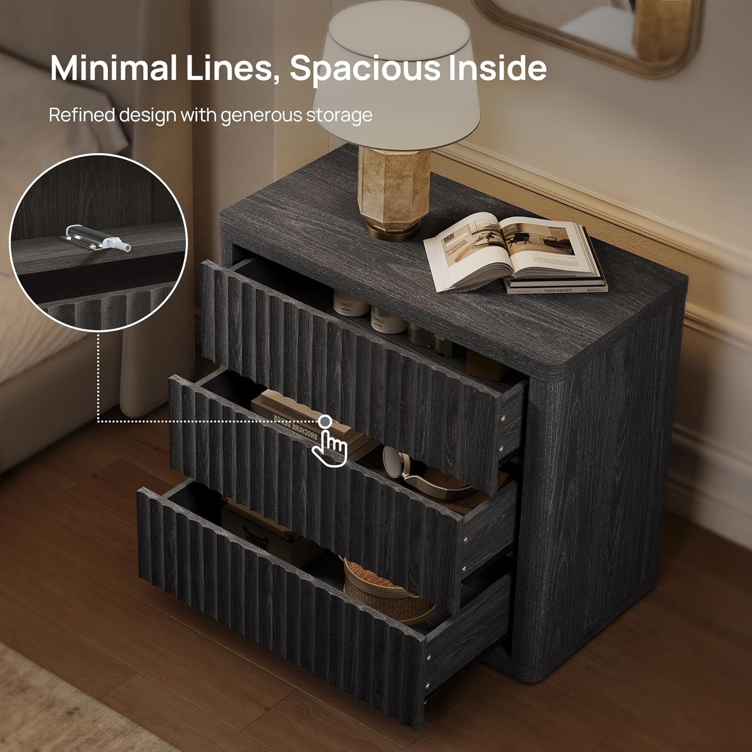 Minimalist & Practical- Refresh your space with this end tables bedroom's smooth curved silhouette and refined fluted drawer fronts. The handle-free design maintains a clean, uninterrupted look, giving the piece a modern, sculptural presence that stands out without overwhelming your dcor. With three drawers that open effortlessly and a style that blends into both contemporary and classic settings, it adds understated elegance while keeping your essentials neatly organized.