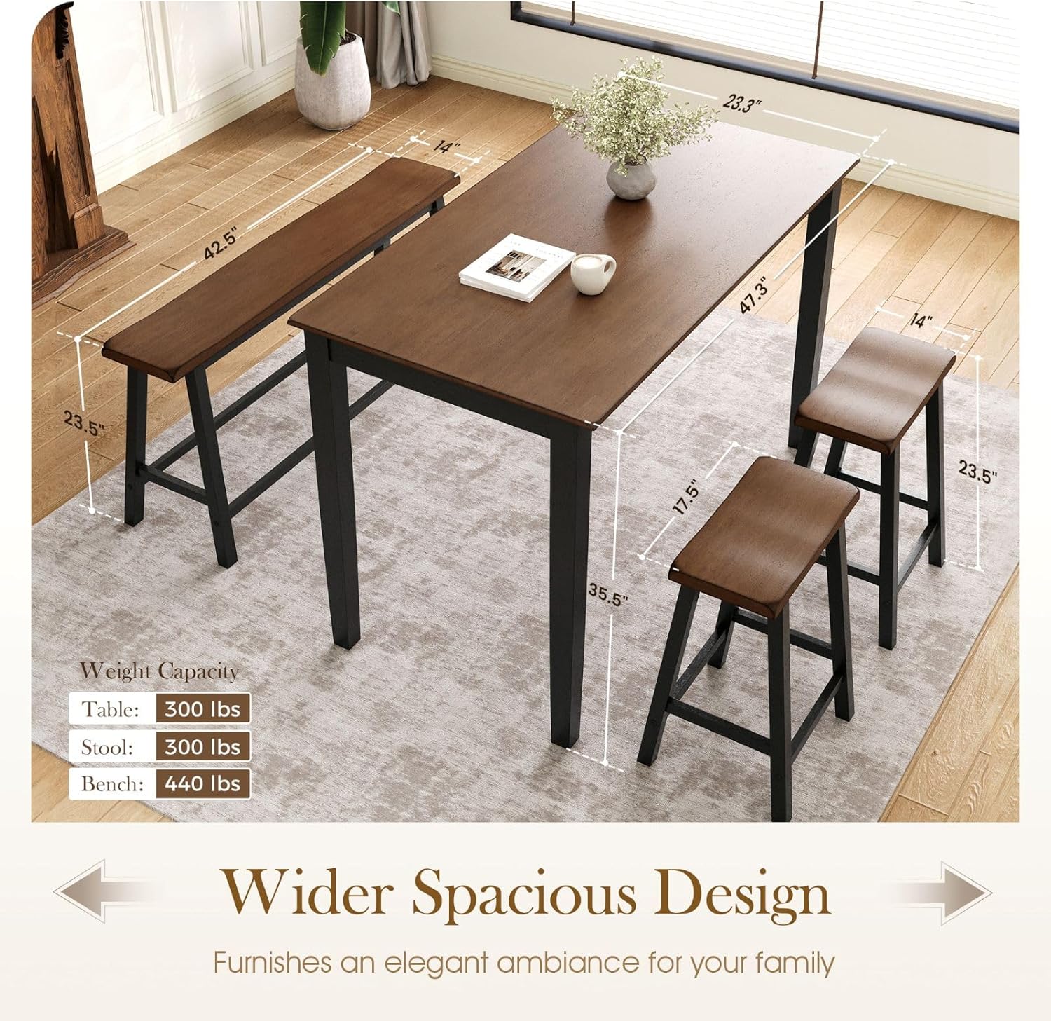 DimensionsBar Table: 47.3"L x 23.3"W x 35.5"H; Chair: 17.5"L x 14"W x 23.5"H ; Bench: 42.5"L x 14"W x 23.5"H. Elevate your dining experience with the Dining Set!