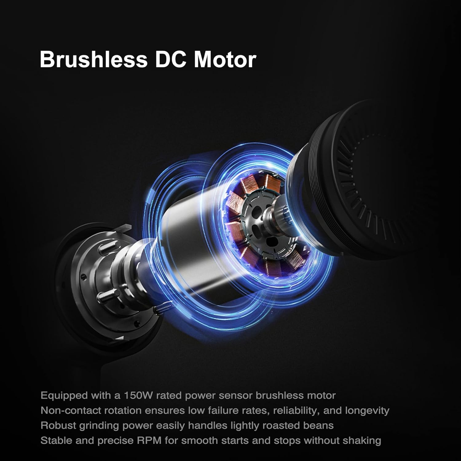 [ Sensory Brushless Motor ] Our Burr Coffee Grinder uses a zero-friction motor with PID control and Hall elements for smoother operation, longer lifespan, and greater stability. Unlike traditional brushed motors, it doesnt shake during use, providing a more precise grind every time.