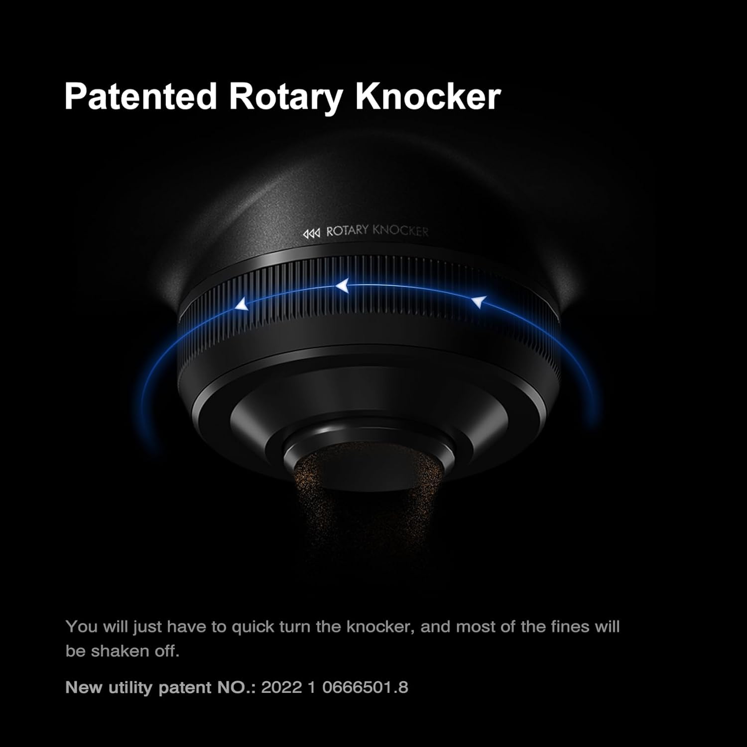 [ Patented Rotary Knocker ] Ordinary coffee grinder lt's usually difficult to clean fines thoroughly from the grinderspout. Sculptor 064S coffee grinder designed this rotary knocker to have fines cleanedeffectively, You will just have to quick turn the knocker, andmost of the fines will be shaken off.