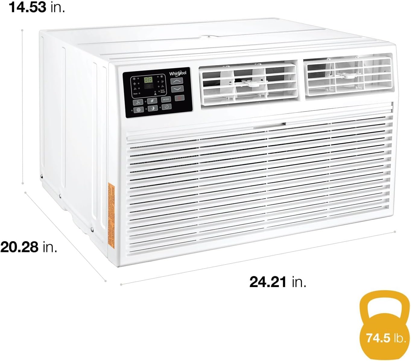 Universal Fit Size: With dimensions of 20.3 D x 24.2 W x 14.5 H, this air conditioner fits into sleeves 24.5-27 wide and comes with a trim kit and rear grille to finish off the look
