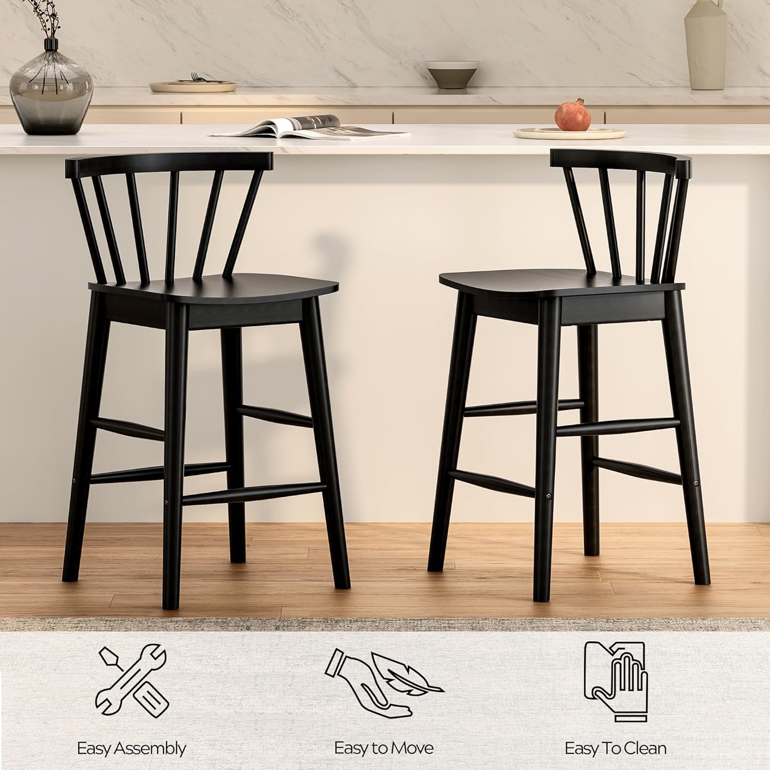 Stylish and Versatile: Simple clean lines with natural appearance, the country style black bar stools easily blend into any home decor and will boost the charm of any dining area with classic design. It is an ideal choice for dining room, kitchen, bar, bistro, pub, restaurant and other indoor
