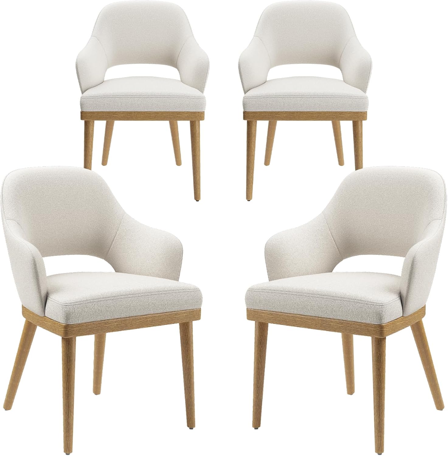 Wooden Dining Chairs Set of 4, Modern Fabric Upholstered Dining Room Chair, Kitchen Side Chairs, Farmhouse Dinner Chair with Open Back for Kitchen, Beige