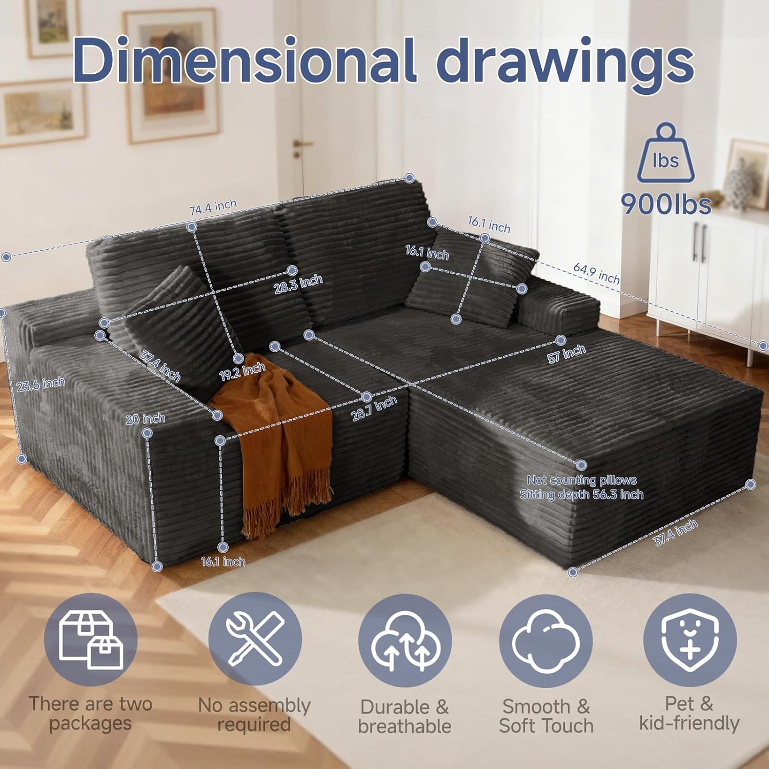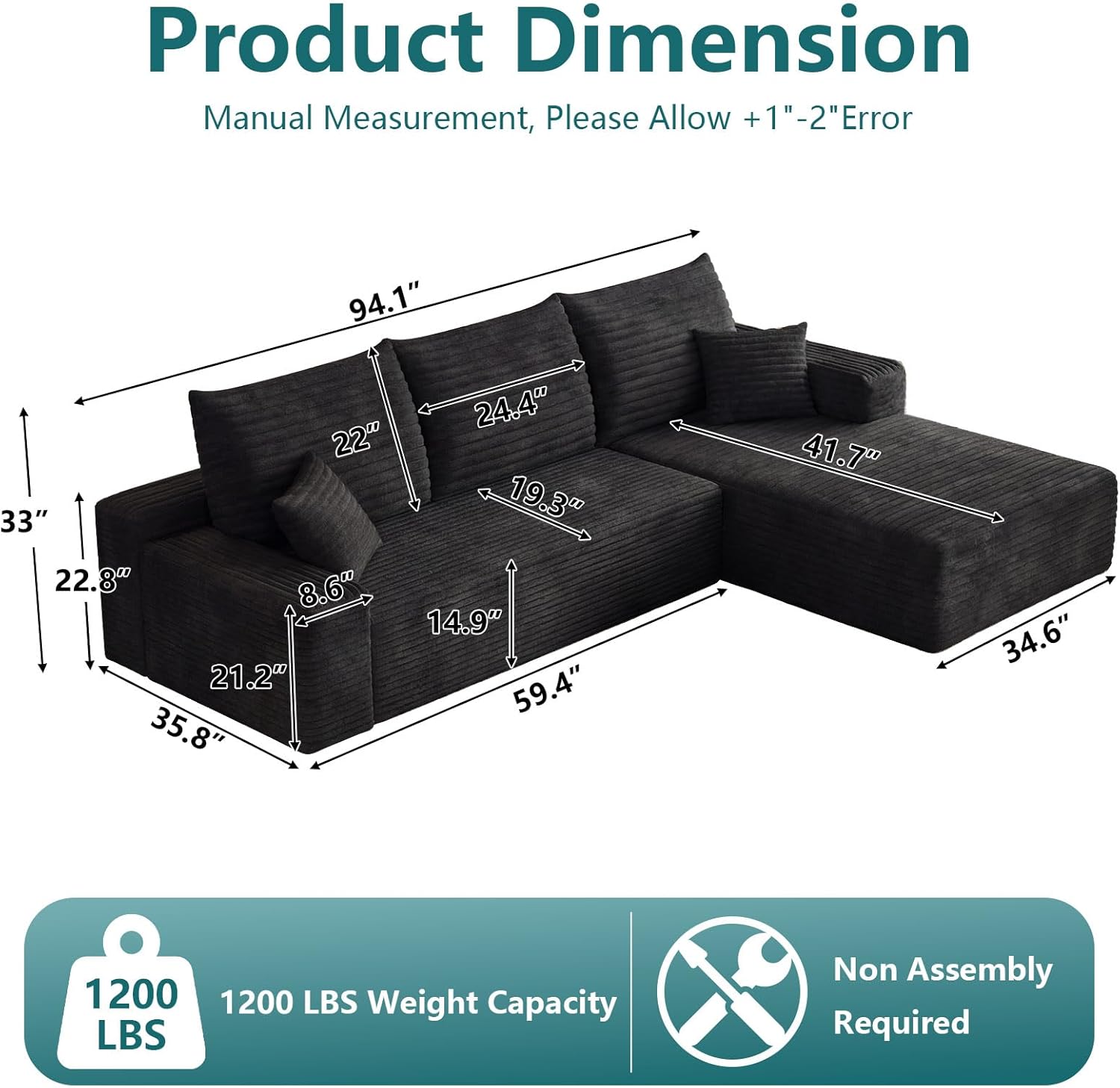 95" L Shape with Right Facing Chaise