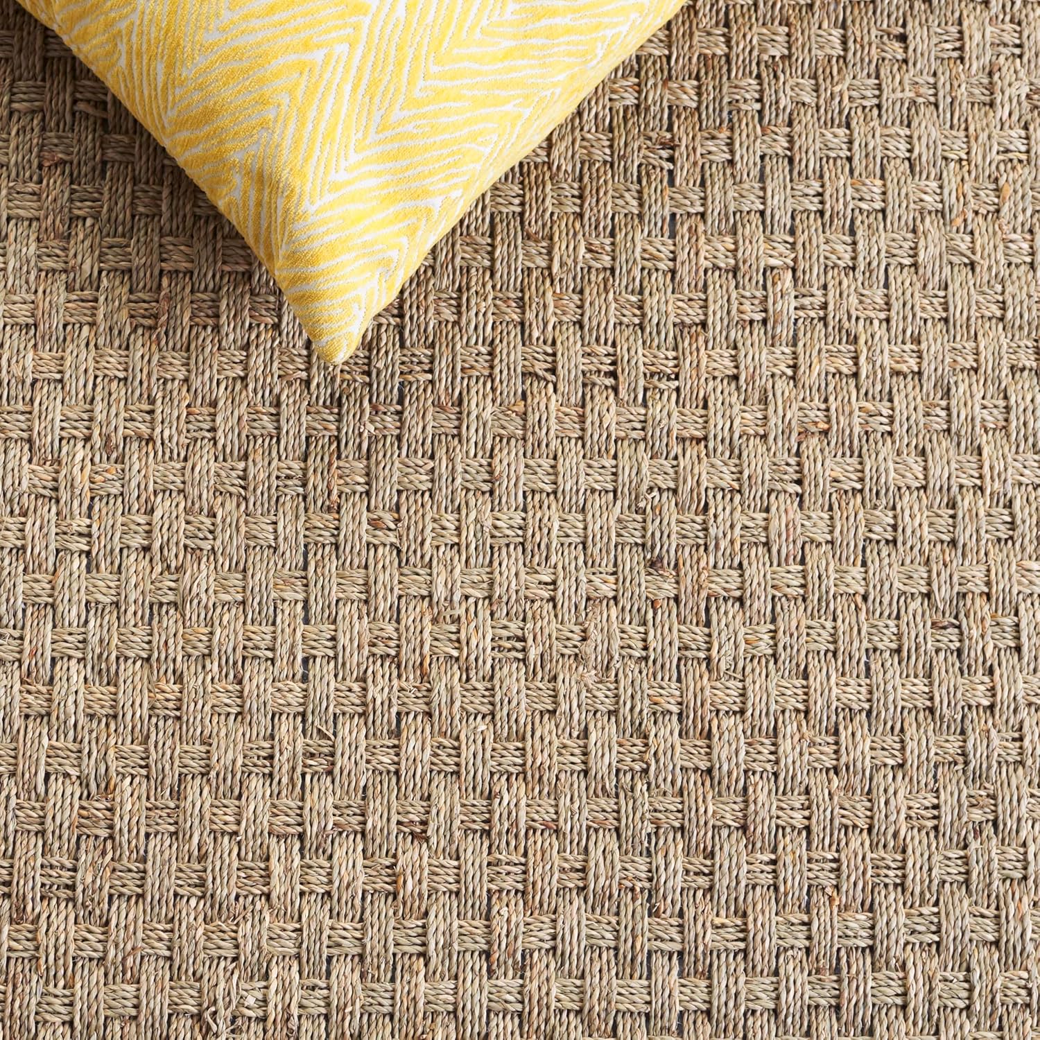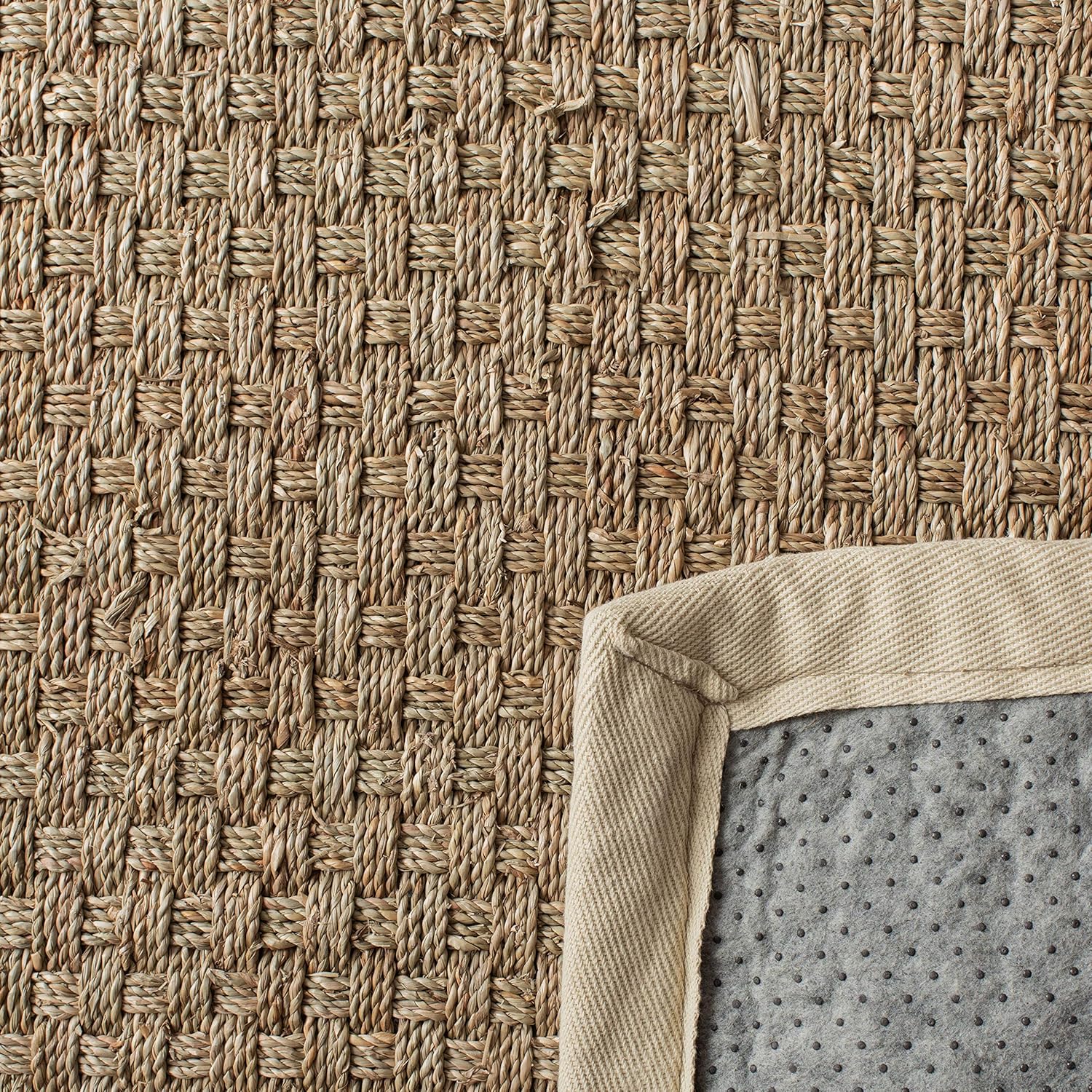 [SUSTAINABLE & DURABLE]: Made from premium, sustainable seagrass for eco-friendly appeal and long-lasting beauty; felt-dotted backing adds grip and stability, while a rug pad is recommended to enhance comfort, prevent shifting, and protect floors