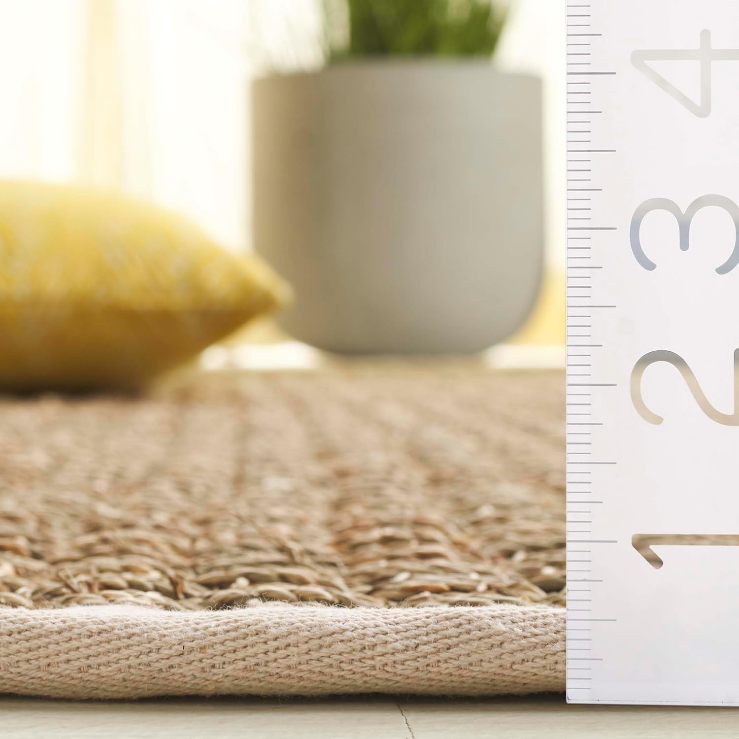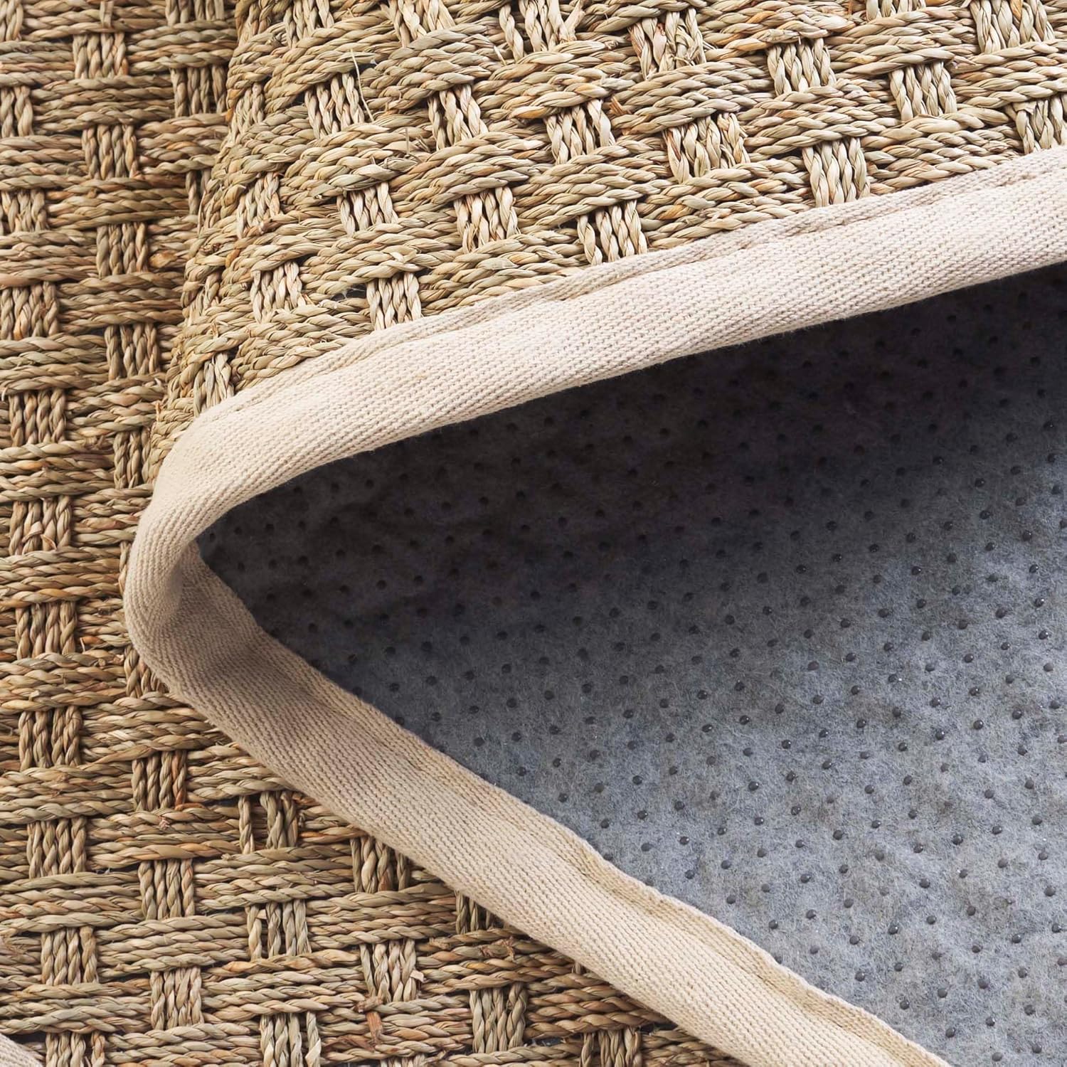 [SUSTAINABLE & DURABLE]: Made from premium, sustainable seagrass for eco-friendly appeal and long-lasting beauty; felt-dotted backing adds grip and stability, while a rug pad is recommended to enhance comfort, prevent shifting, and protect floors