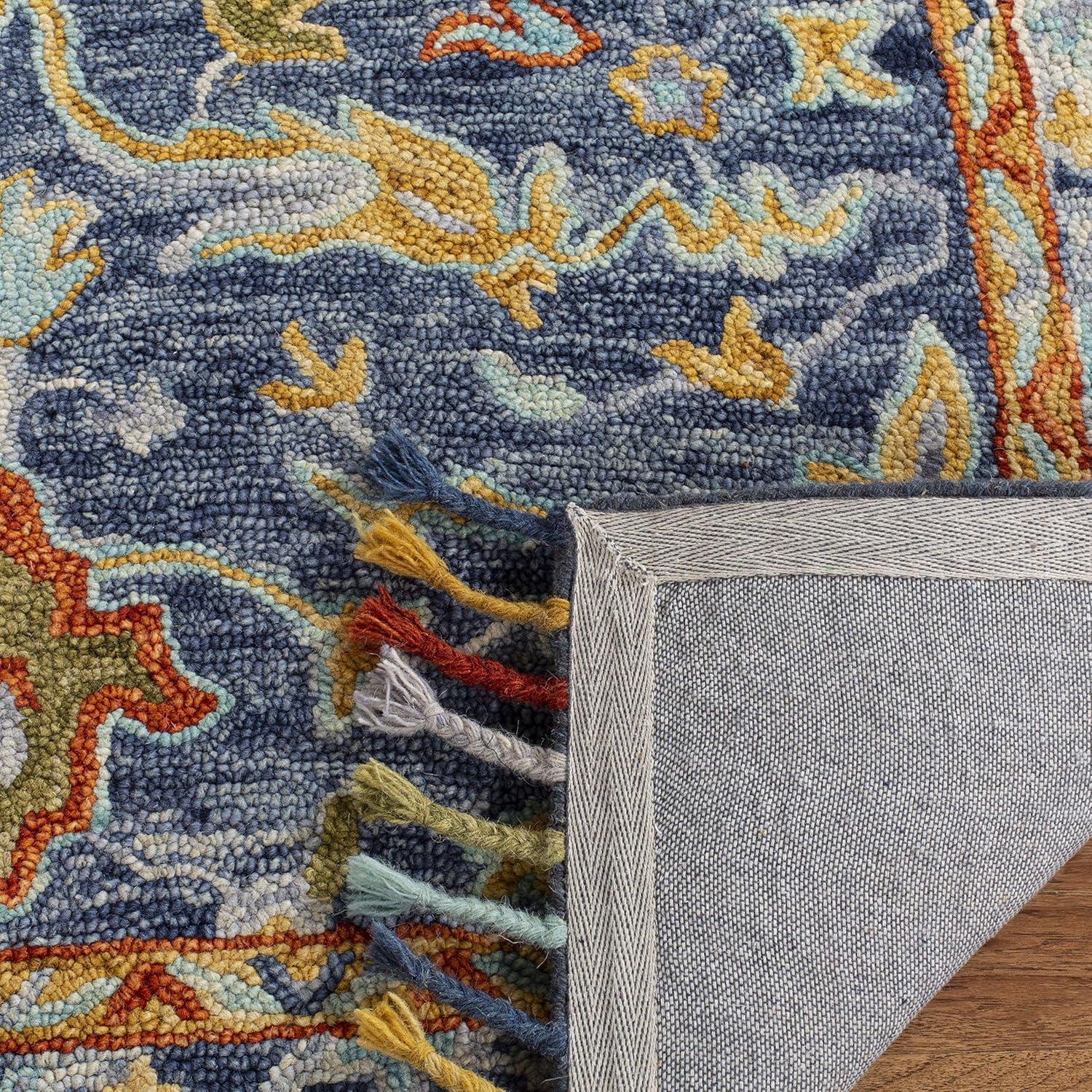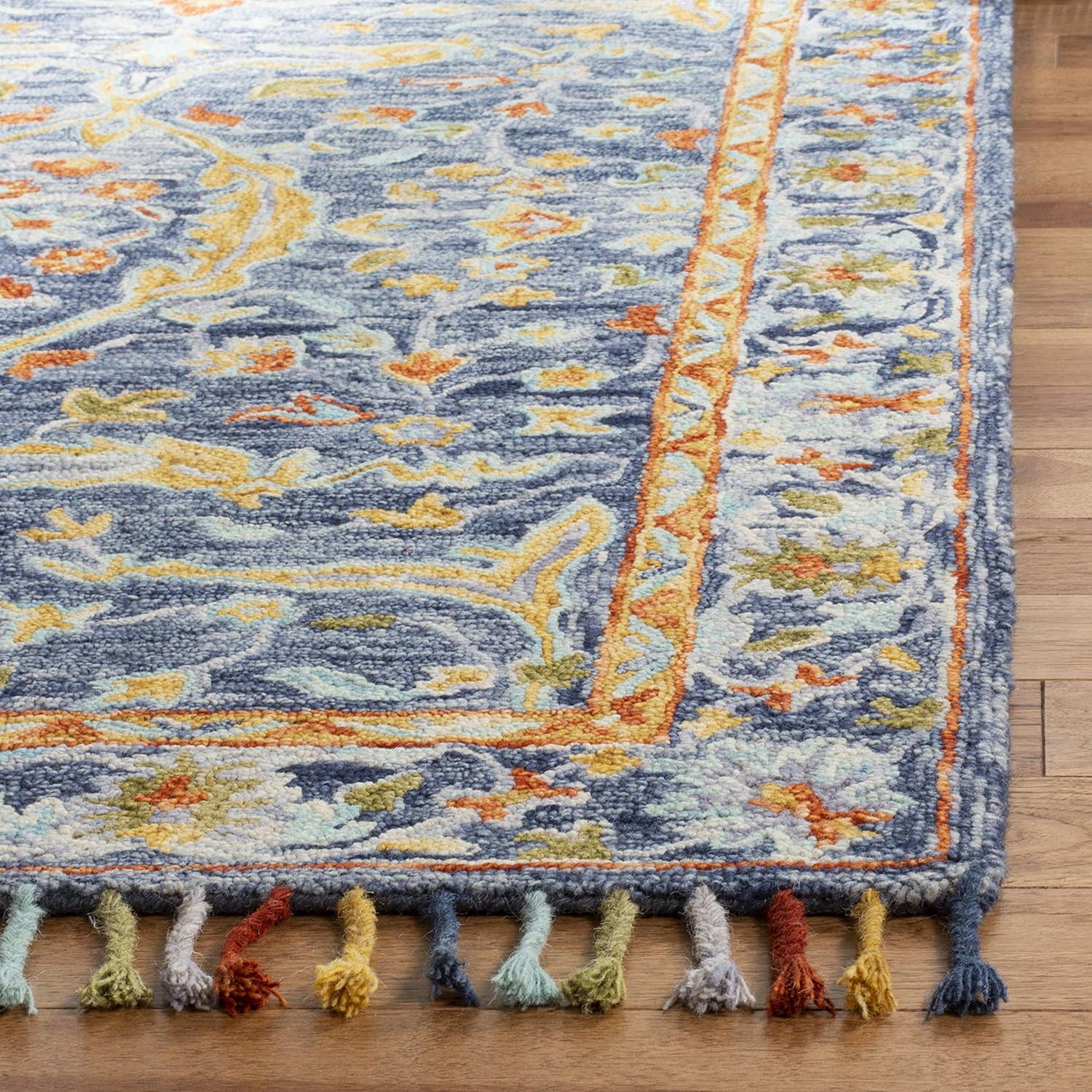 Aspen Collection Area Rug - 9' x 12', Blue & Rust, Handmade Boho Braided Tassel Wool, Ideal for High Traffic Areas in Living Room, Bedroom (APN116M)