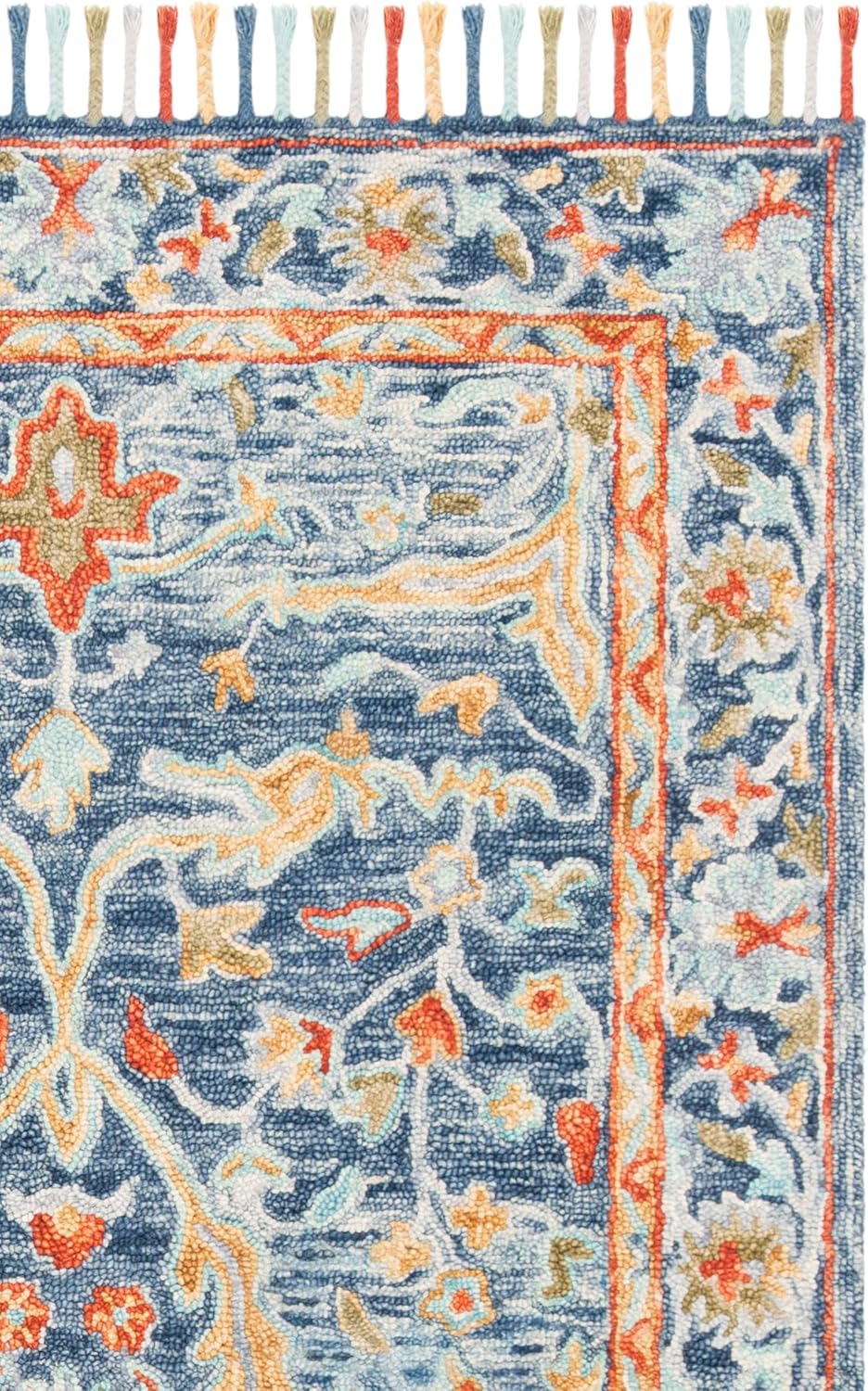 • Aspen Collection Area Rug - 9' x 12', Blue & Rust, Handmade Boho Braided Tassel Wool, Ideal for High Traffic Areas in Living Room, Bedroom (APN116M)
