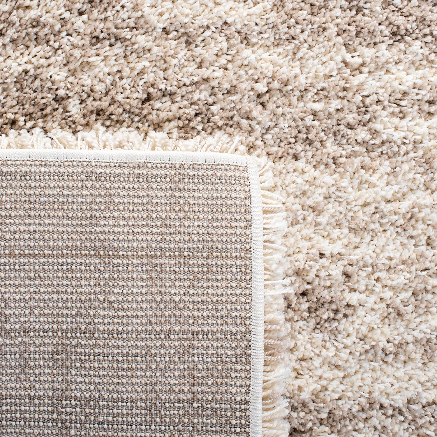 • Hudson Shag Collection Area Rug - 9' x 12', Ivory & Beige, Modern Design, Non-Shedding & Easy Care, 2-inch Thick Ideal for High Traffic Areas in Living Room, Bedroom (SGH206B)