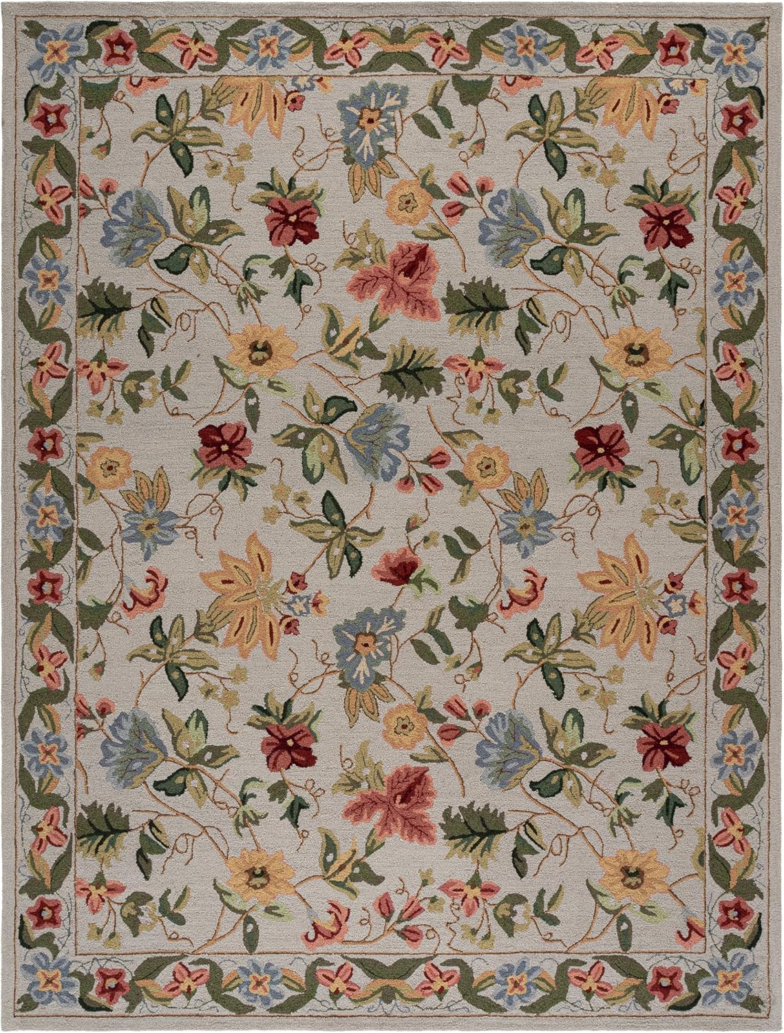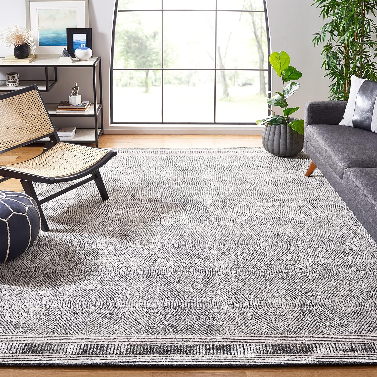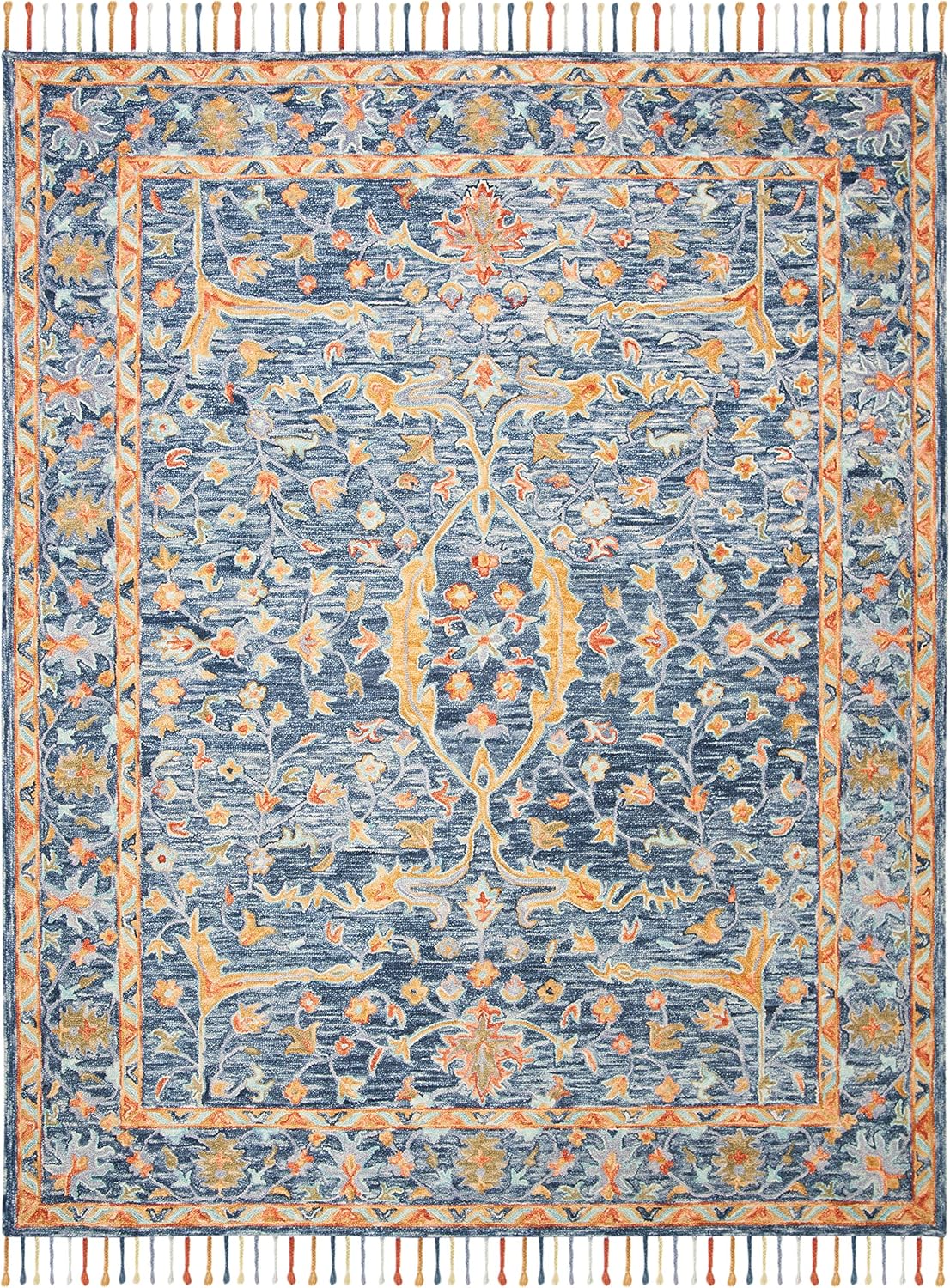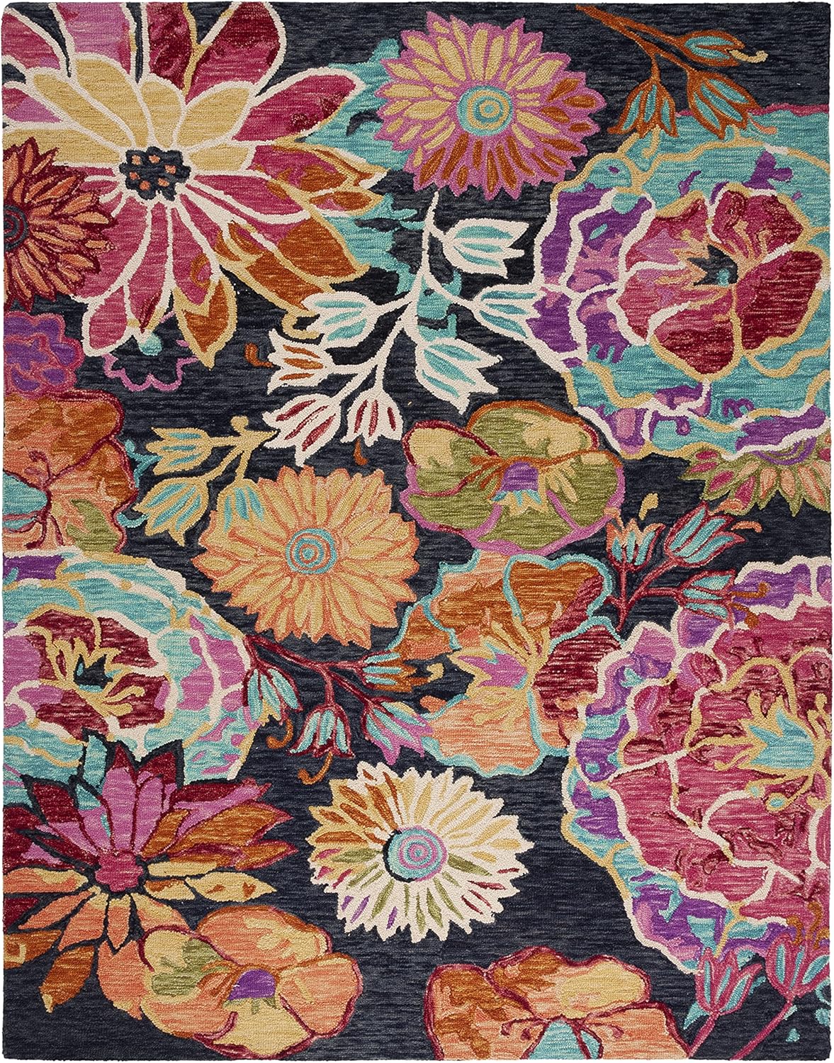 Aspen Collection Area Rug - 9' x 12', Charcoal & Blue, Handmade Boho Floral Wool, Ideal for High Traffic Areas in Living Room, Bedroom (APN520H)