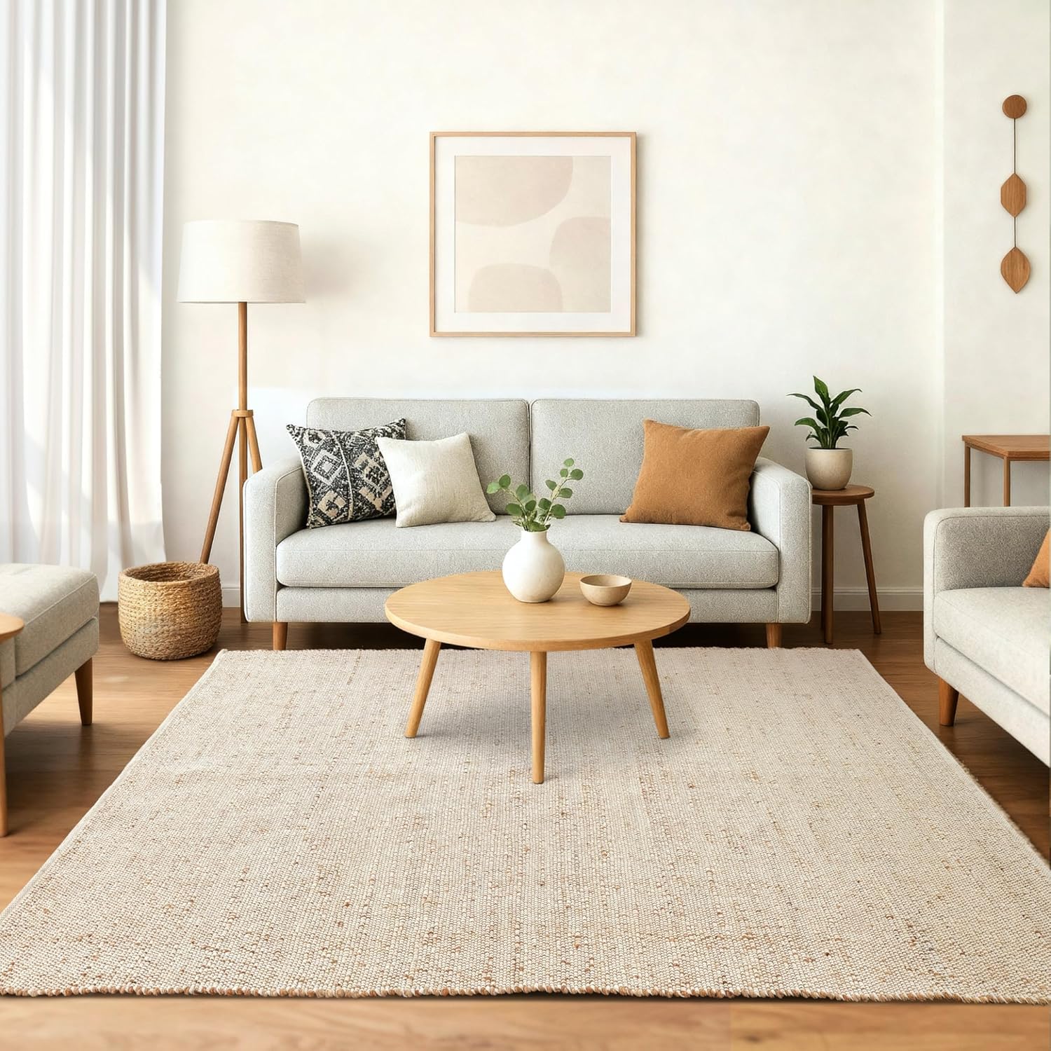 Jute Cotton Area Rug 10'x13' ft Large Hand Woven Natural Farmhouse Rug for Living Room, Bedroom Kitchen - Rustic Vintage Bohemian Eco-Friendly Carpet Home Dcor 10x13 ft Natural Boho Rug