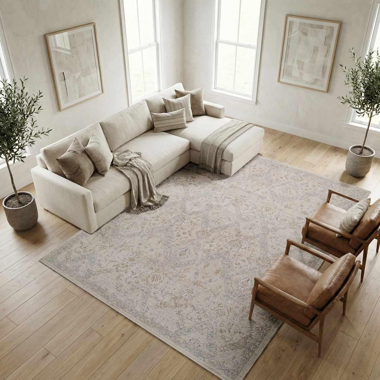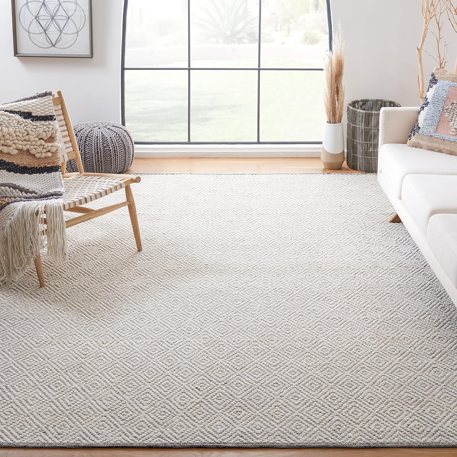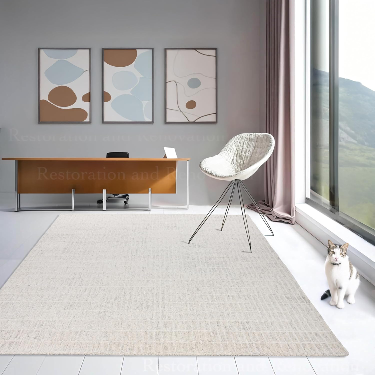 Area Rug 8x10 - Marbella Collection - Large - Beige, Handmade Wool, Ideal for Living Room, Bedroom, Office, Dining Space (MRB158B)