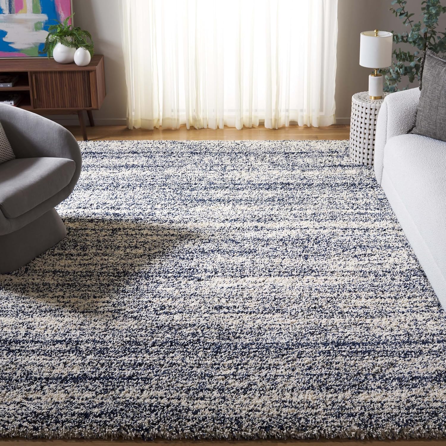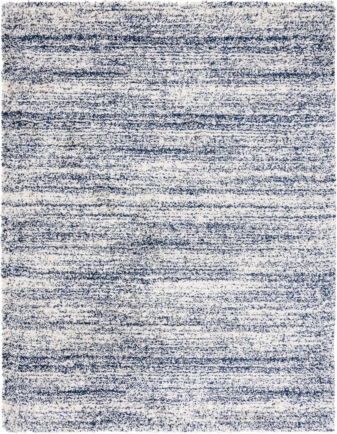 Hudson Shag Collection Area Rug - 9' x 12', Ivory & Navy, Modern Abstract Design, Non-Shedding & Easy Care, 2-inch Thick Ideal for High Traffic Areas in Living Room, Bedroom (SGH295A)