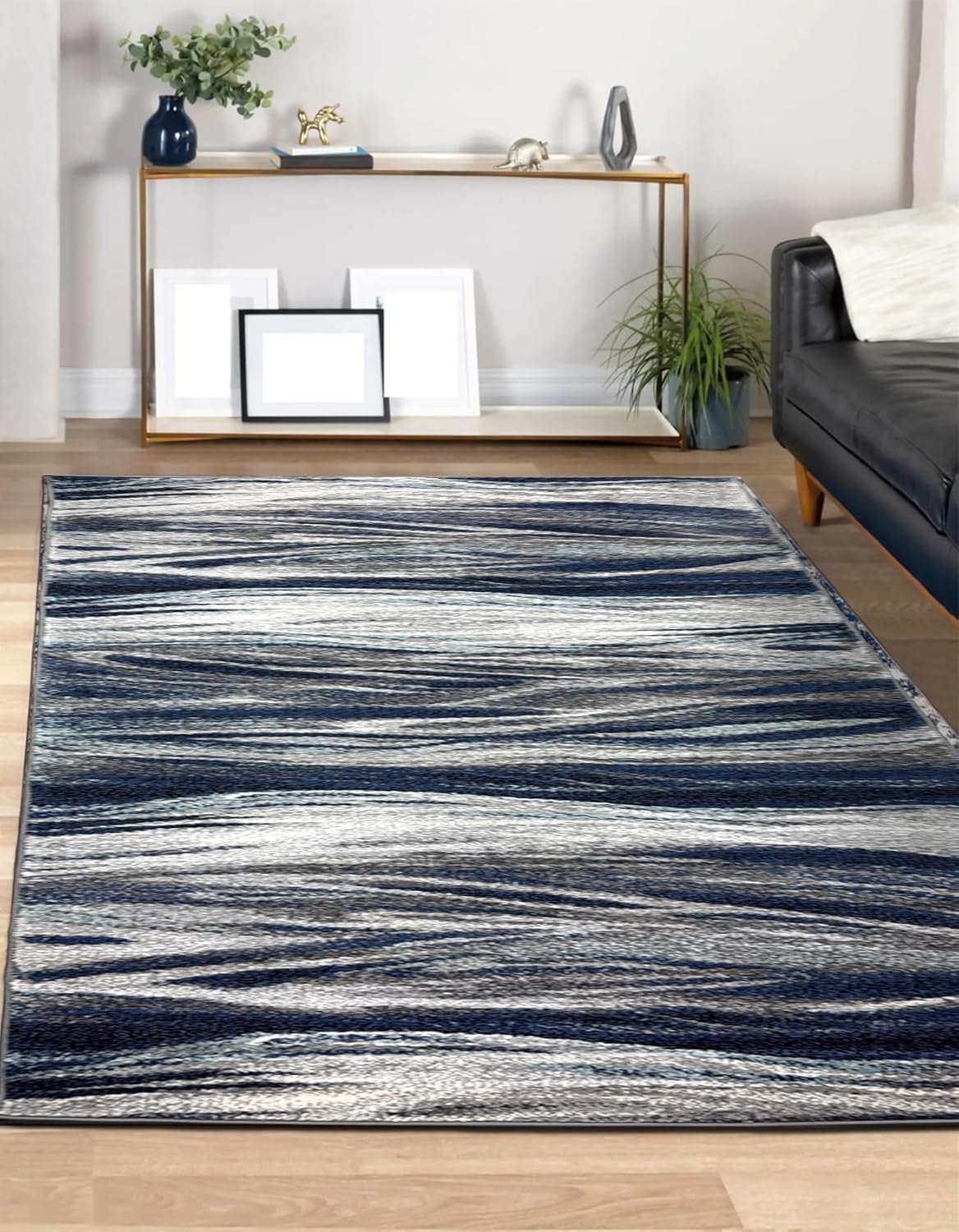 Area Rugs - 9x12 Non-Shedding, Abstract Rugs for Kitchen, Living Room, Bedroom, Dining Room, Entryway - Size: 9'2" x 11'11", Navy/Grey/White