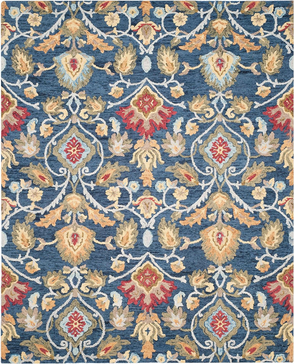 Blossom Collection Area Rug - 9' x 12', Navy & Multi, Handmade Wool, Ideal for High Traffic Areas in Living Room, Bedroom (BLM402A)