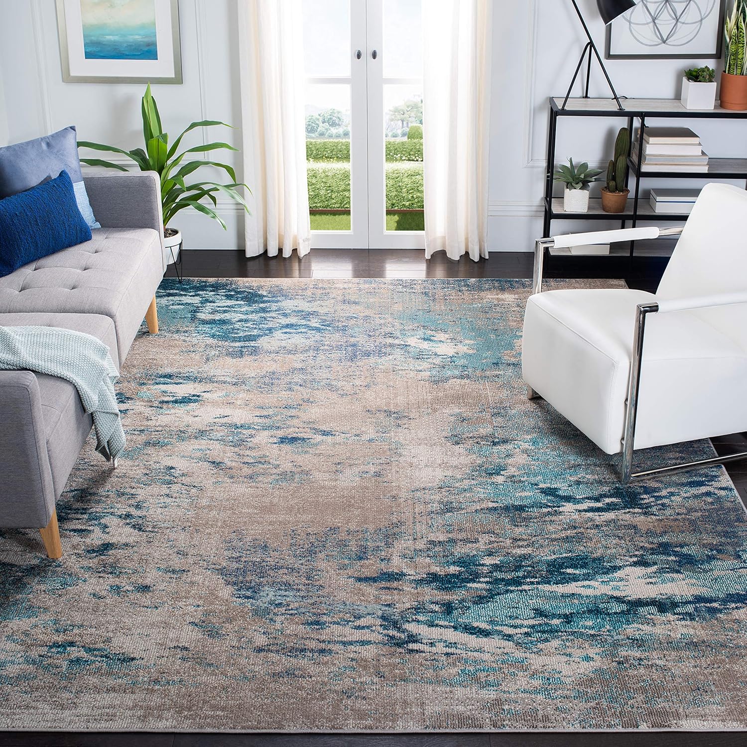 Madison Collection X-Large Area Rug - 12' x 18', Blue & Grey, Modern Boho Abstract Design, Non-Shedding & Easy Care, Ideal for High Traffic Areas in Living Room, Bedroom (MAD440M)