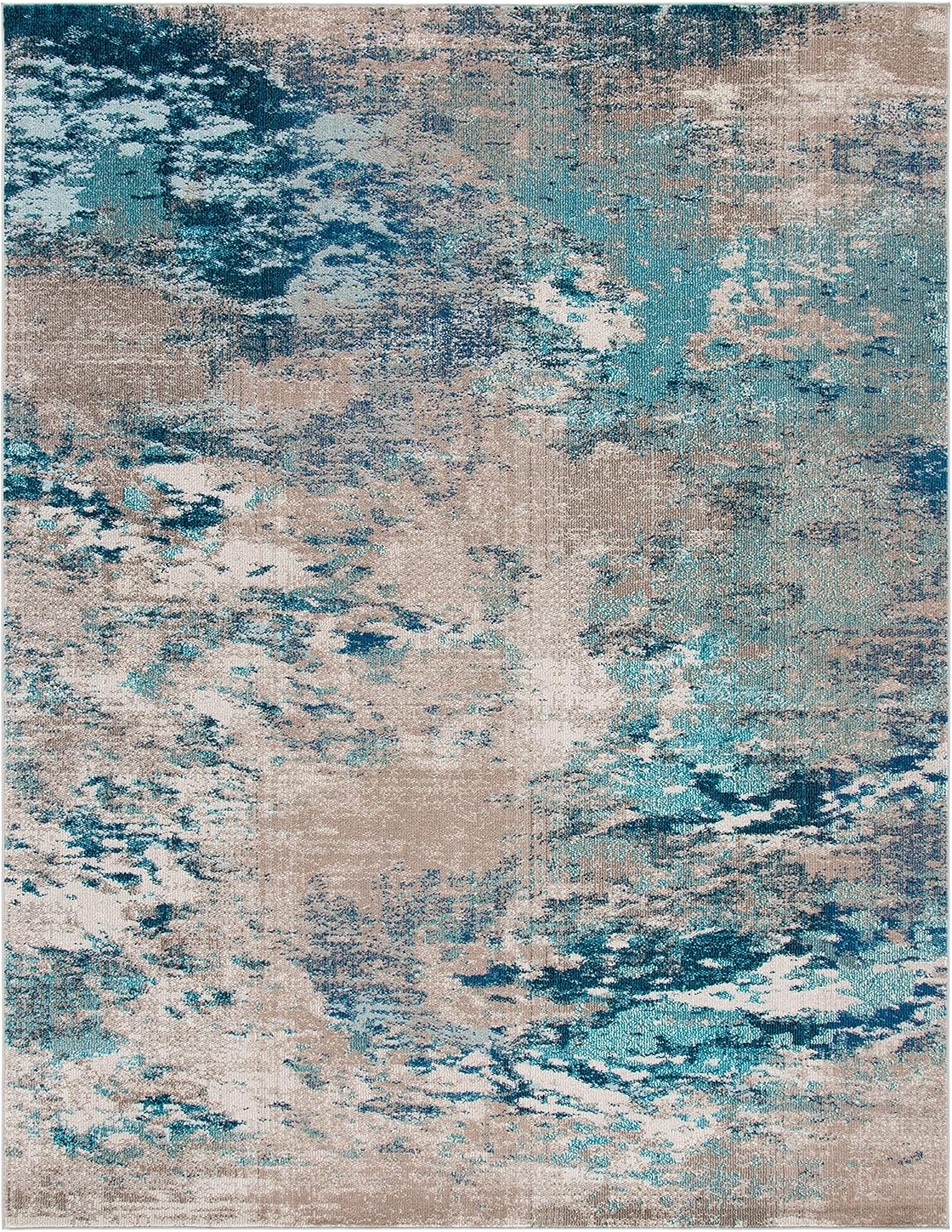 Madison Collection Area Rug - 10' x 14', Light Blue & Green, Boho Abstract Design, Non-Shedding & Easy Care, Ideal for High Traffic Areas in Living Room, Bedroom (MAD440J)
