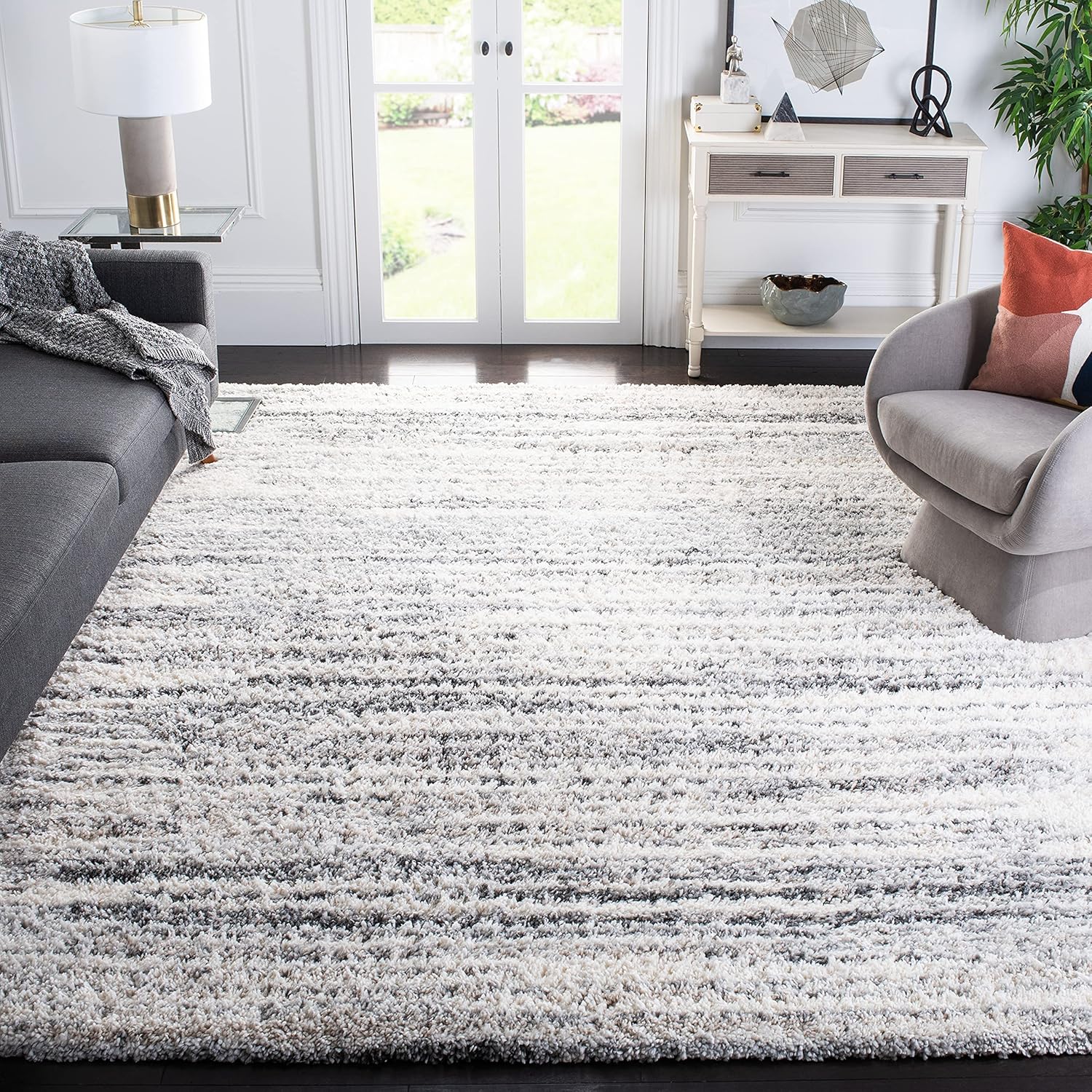 Fontana Shag Collection Area Rug - 9' x 12', Ivory & Grey, Modern Design, Non-Shedding & Easy Care, 2-inch Thick Ideal for High Traffic Areas in Living Room, Bedroom (FNT850A)