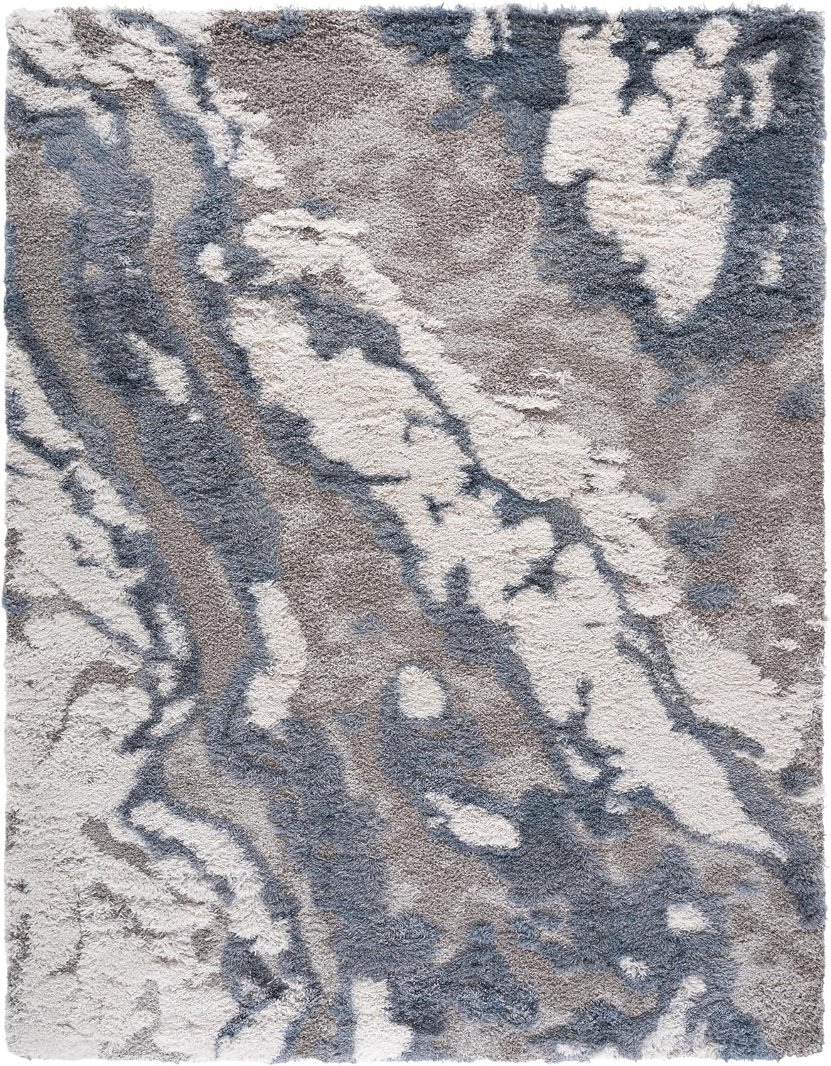 Horizon Shag Collection Area Rug - 9' x 12', Grey & Blue, Modern Abstract Design, Non-Shedding & Easy Care, 2-inch Thick Ideal for High Traffic Areas in Living Room, Bedroom (HZN890G)