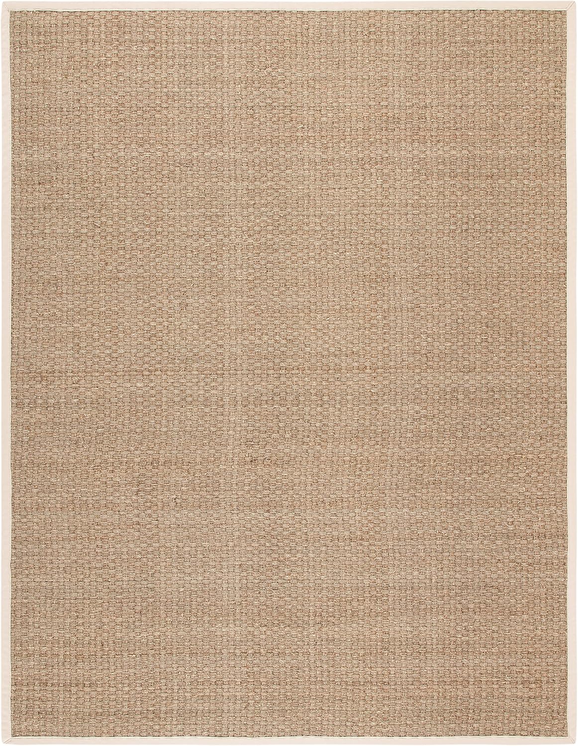 Area Rug 10x14 - Natural Fiber Collection - Large - Marble & Beige, Sisal, Woven Design with Border (NF143C)