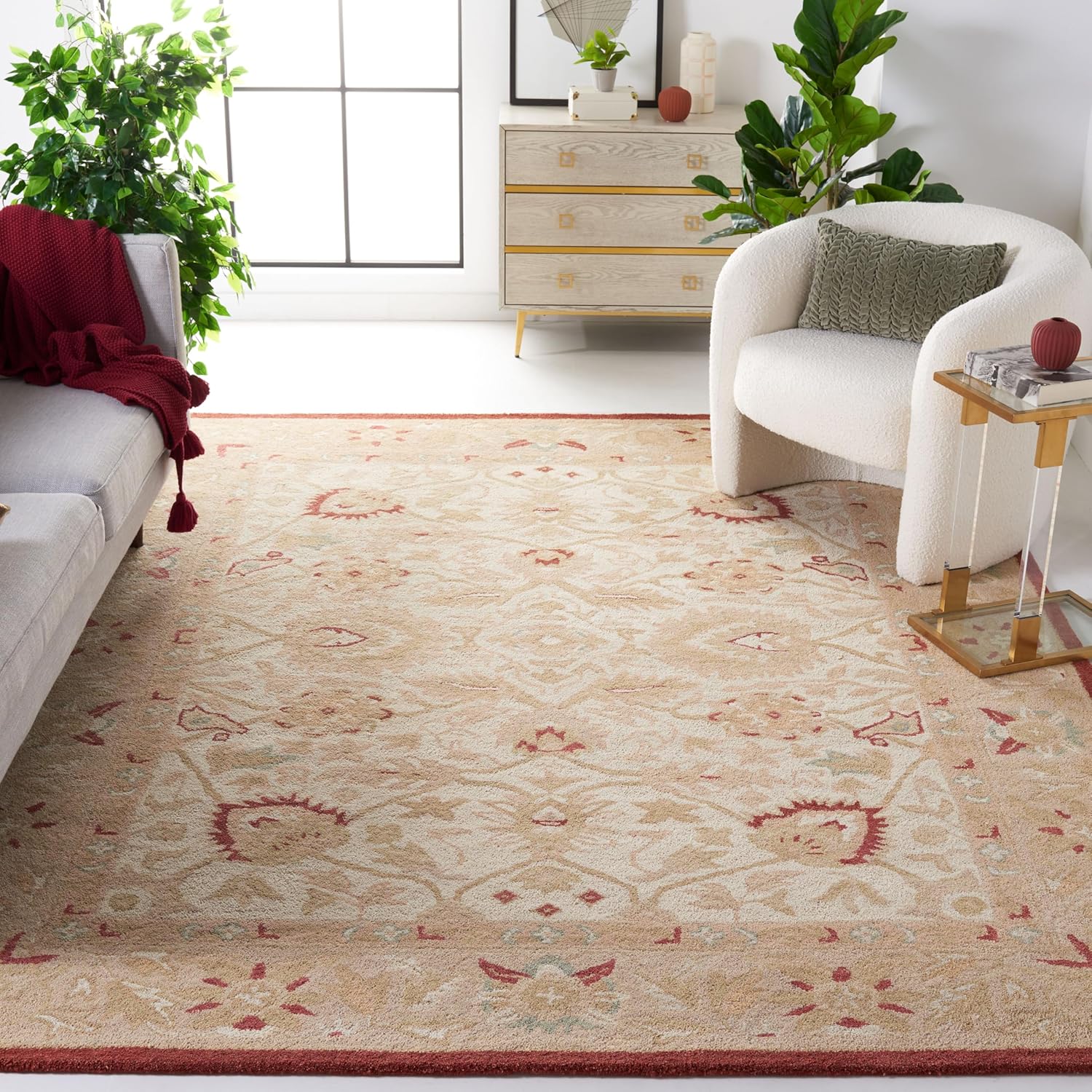 Anatolia Collection Area Rug - 8' x 10', Beige & Rust, Handmade Traditional Oriental Wool, Ideal for High Traffic Areas in Living Room, Bedroom (AN512E)