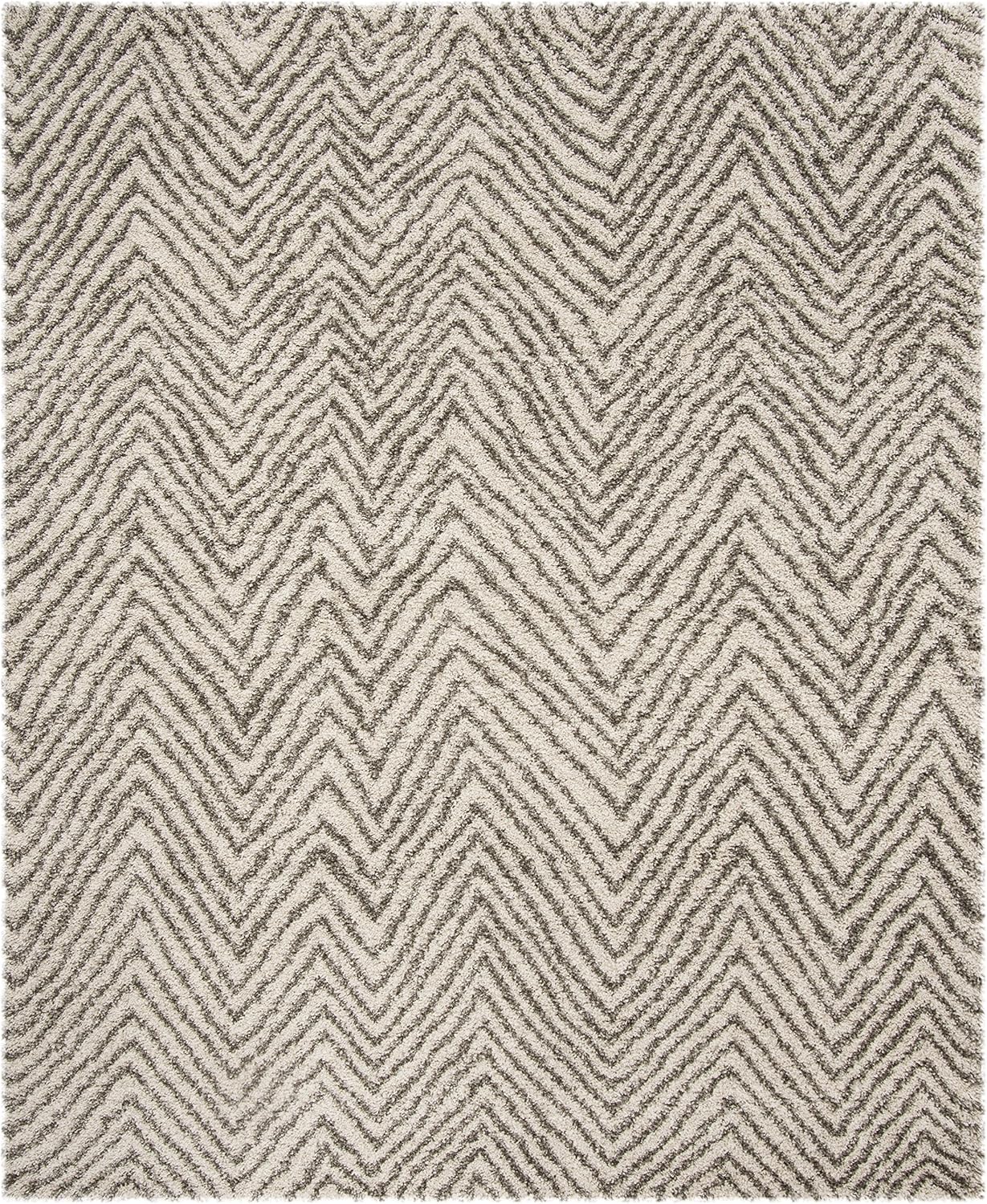 Hudson Shag Collection Area Rug - 9' x 12', Ivory & Grey, Chevron Design, Non-Shedding & Easy Care, 2-inch Thick Ideal for High Traffic Areas in Living Room, Bedroom (SGH375A)