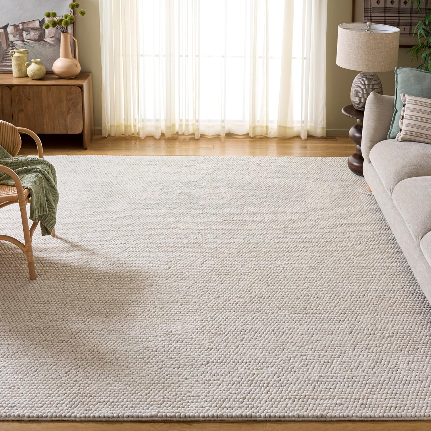 Natura Collection Area Rug - 12' Square, Ivory, Handmade Wool Blend, Textured Design, Ideal for Living Room, Bedroom, Dining Space (NAT620A)