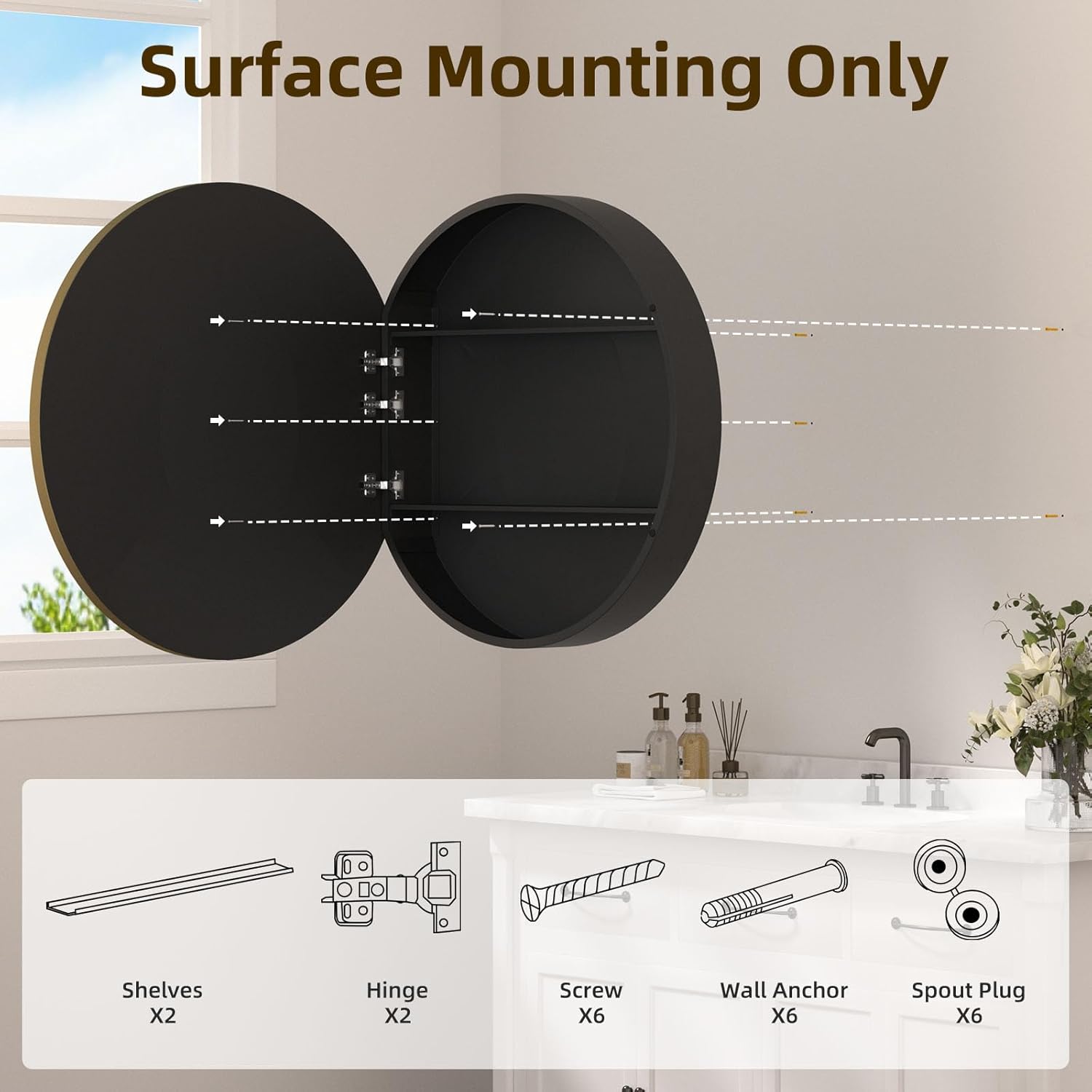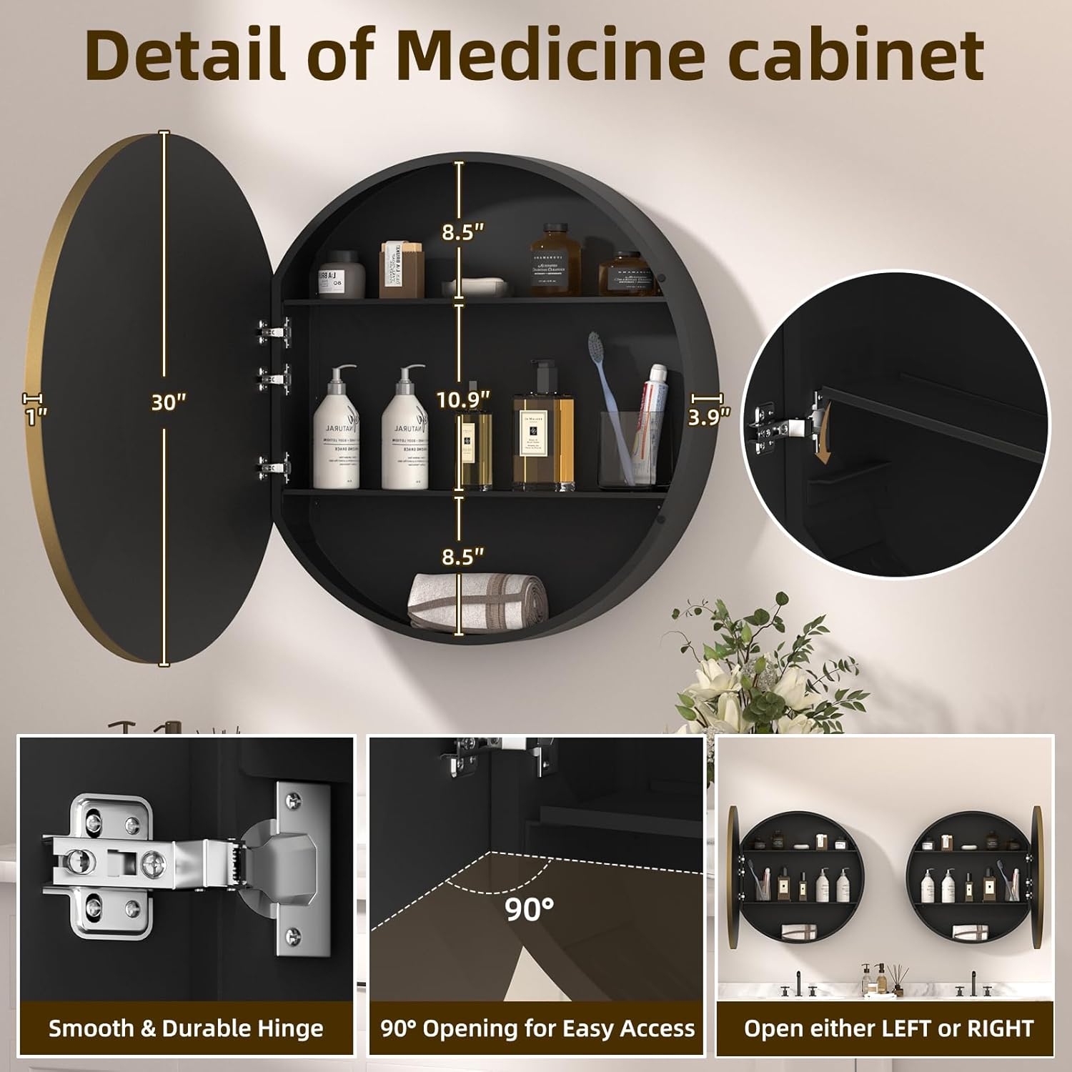 【𝐒𝐮𝐩𝐞𝐫𝐢𝐨𝐫 𝐃𝐮𝐫𝐚𝐛𝐢𝐥𝐢𝐭𝐲: 𝐌𝐞𝐭𝐚𝐥 𝐂𝐨𝐧𝐬𝐭𝐫𝐮𝐜𝐭𝐢𝐨𝐧】Engineered for the long term the core of this round medicine cabinet is a solid iron frame treated with an anti-corrosion powder coat. This combined with the safety-tempered mirror glass makes this wall mounted medicine cabinet a dependable and safe choice for busy bathrooms.