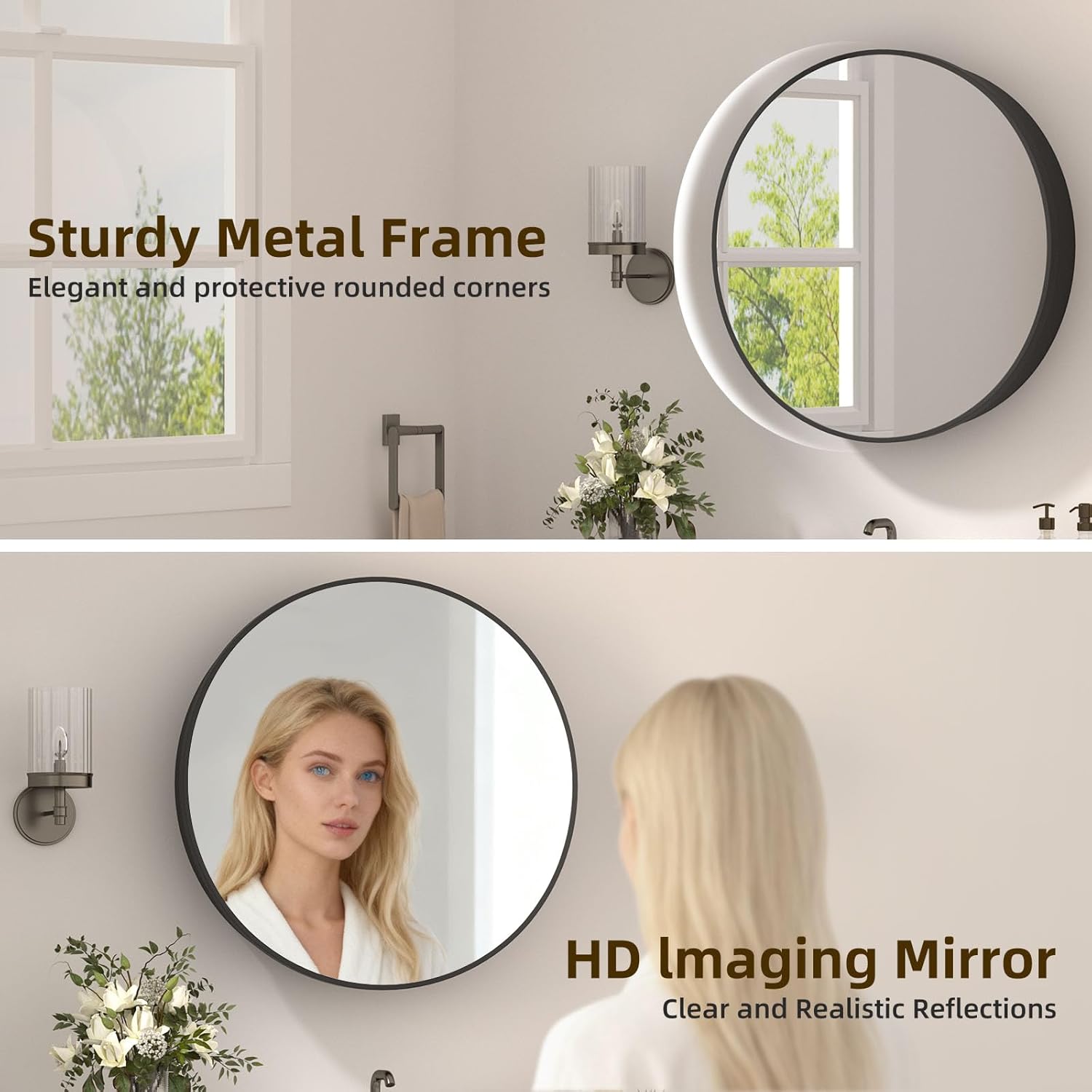 【𝐒𝐮𝐩𝐞𝐫𝐢𝐨𝐫 𝐃𝐮𝐫𝐚𝐛𝐢𝐥𝐢𝐭𝐲: 𝐌𝐞𝐭𝐚𝐥 𝐂𝐨𝐧𝐬𝐭𝐫𝐮𝐜𝐭𝐢𝐨𝐧】Engineered for the long term the core of this round medicine cabinet is a solid iron frame treated with an anti-corrosion powder coat. This combined with the safety-tempered mirror glass makes this wall mounted medicine cabinet a dependable and safe choice for busy bathrooms.