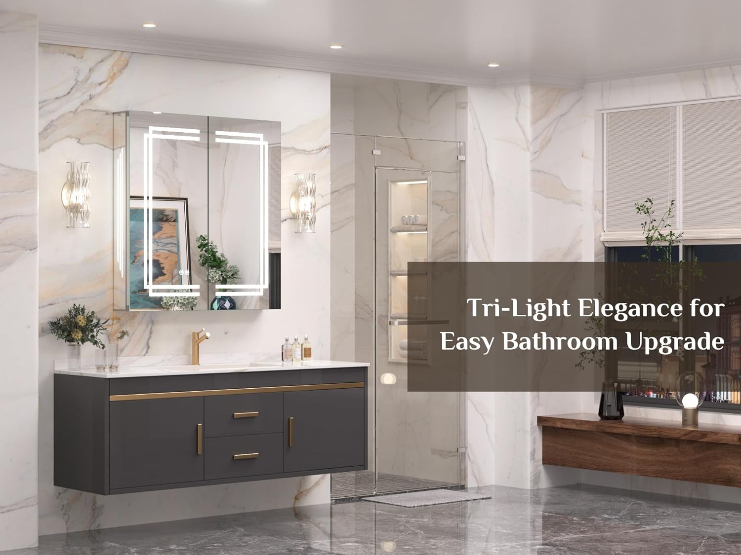 【Customized Settings for an Effortless Experience】 Experience a hassle-free makeup routine with fast fog-free functionality after a steamy shower. Choose from three color temperature options to suit your preference. The cabinet even retains your previous settings eliminating the need for constant adjustments.
