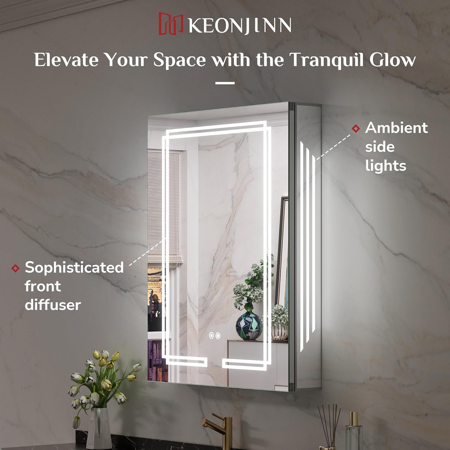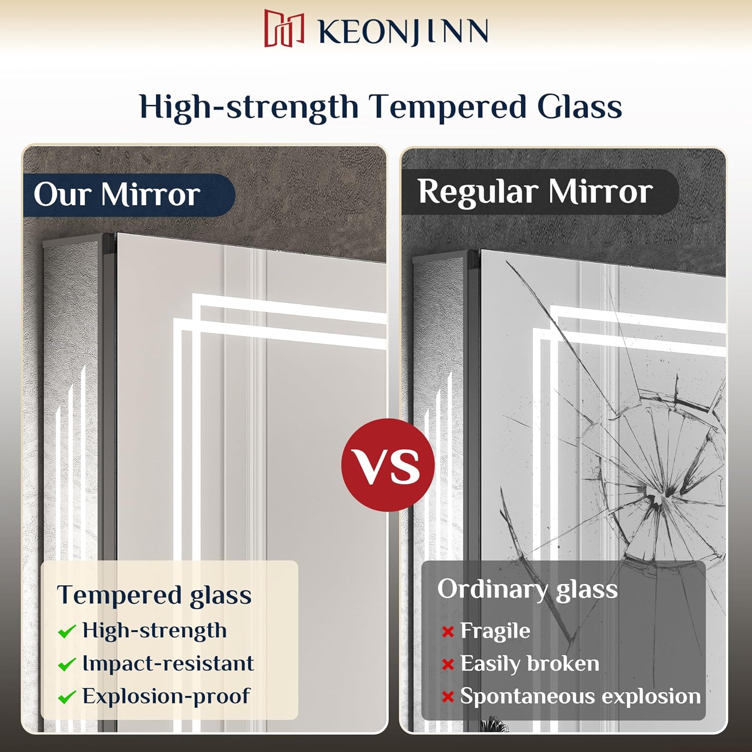 【Seamless Fusion of Illuminated Mirror and Storage】 Hkcvv's LEHkcvv mirrored medicine cabinet integrates adjustable lights on both the cabinet door and side allowing you to create the wonderful lighting and atmosphere for your space. It also features two adjustable tempered glass shelves that can be tailored to your preferred height offering generous storage for all your essentials.