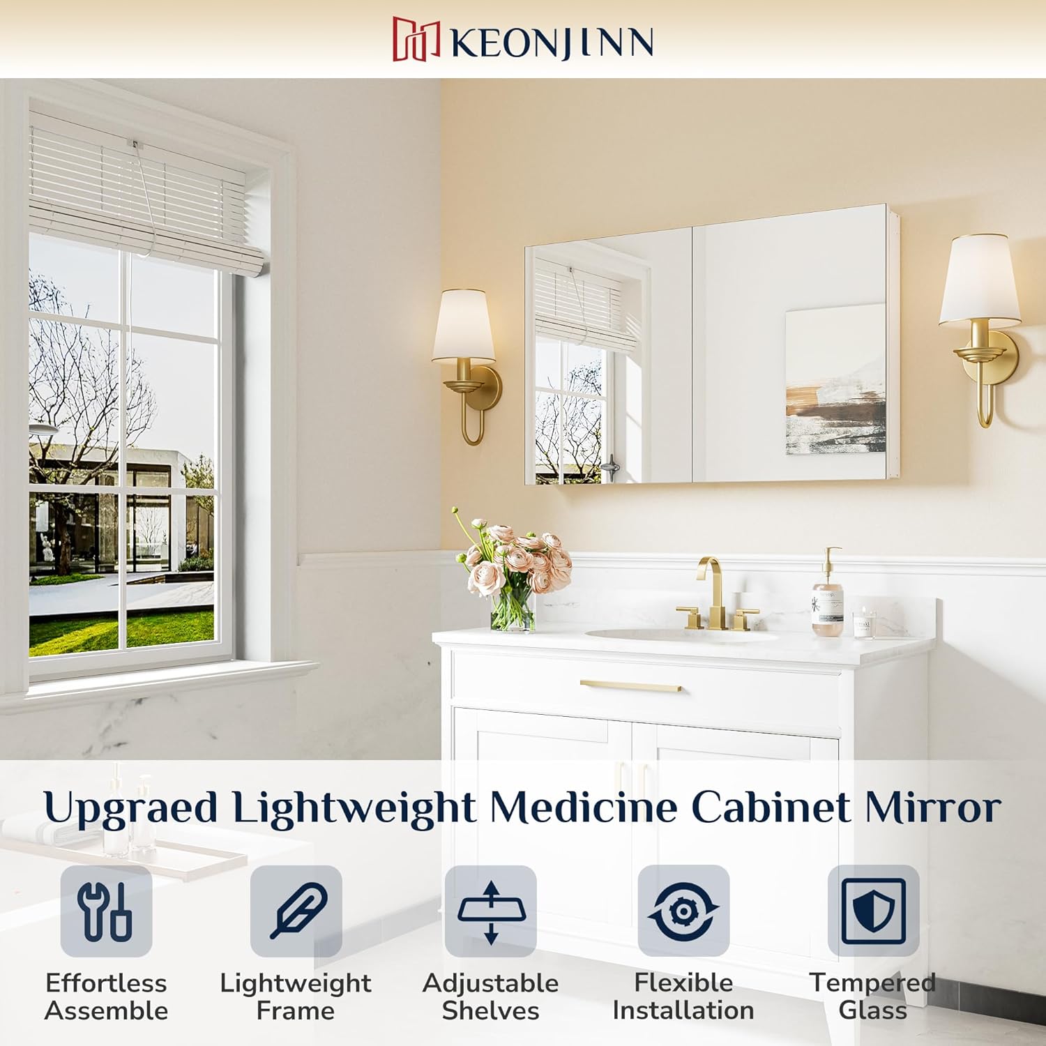 【Assembly Required But Easy to Go】NOTICE: Although this bathroom medicine cabinet mirror requires assembly there are no complicated parts or steps which makes it easily to get started with the installation alone. In addition we offer live installation videos as well as detailed manual in the package to guide you through the process and ensure you have a smooth installation experience.