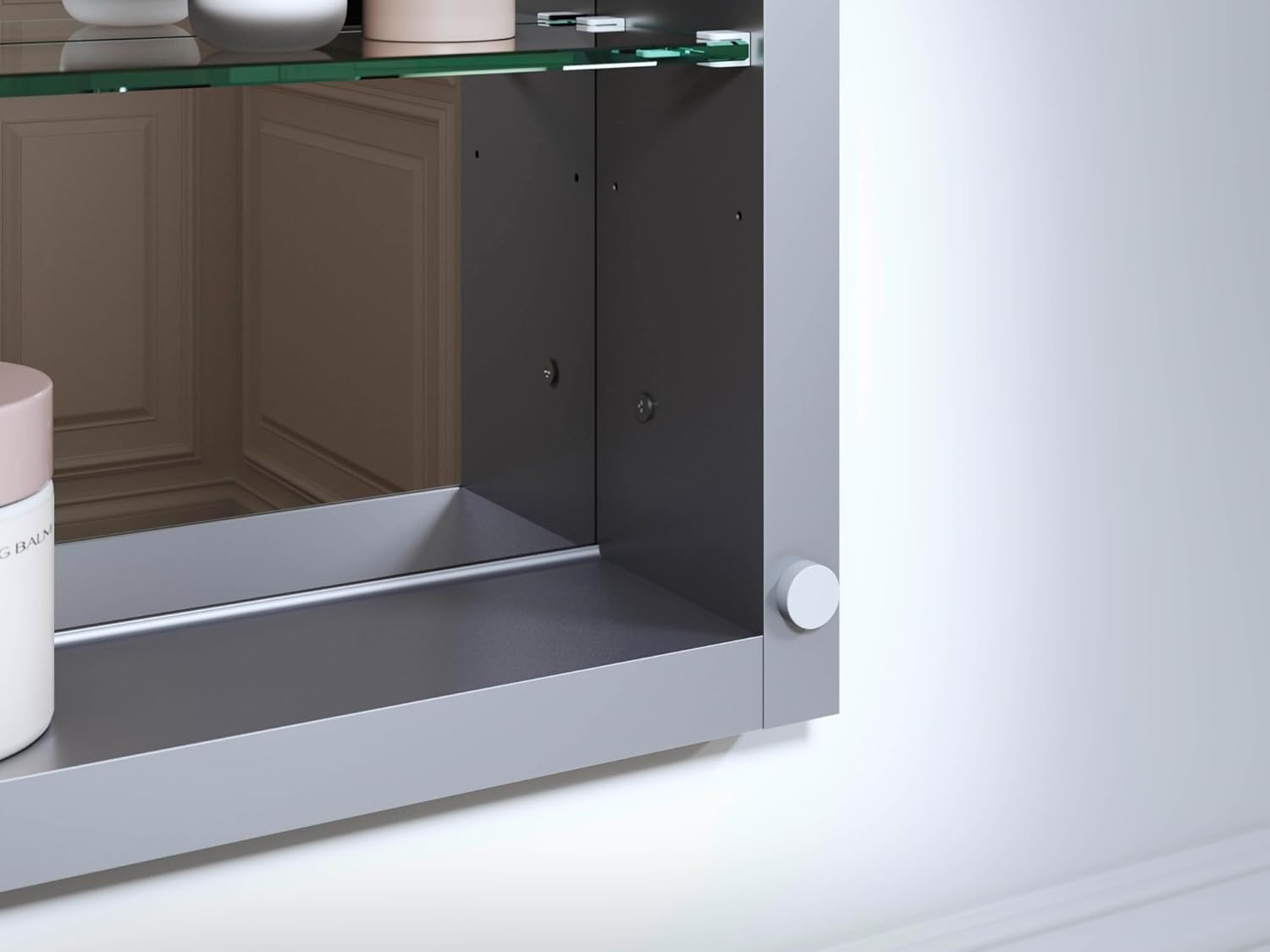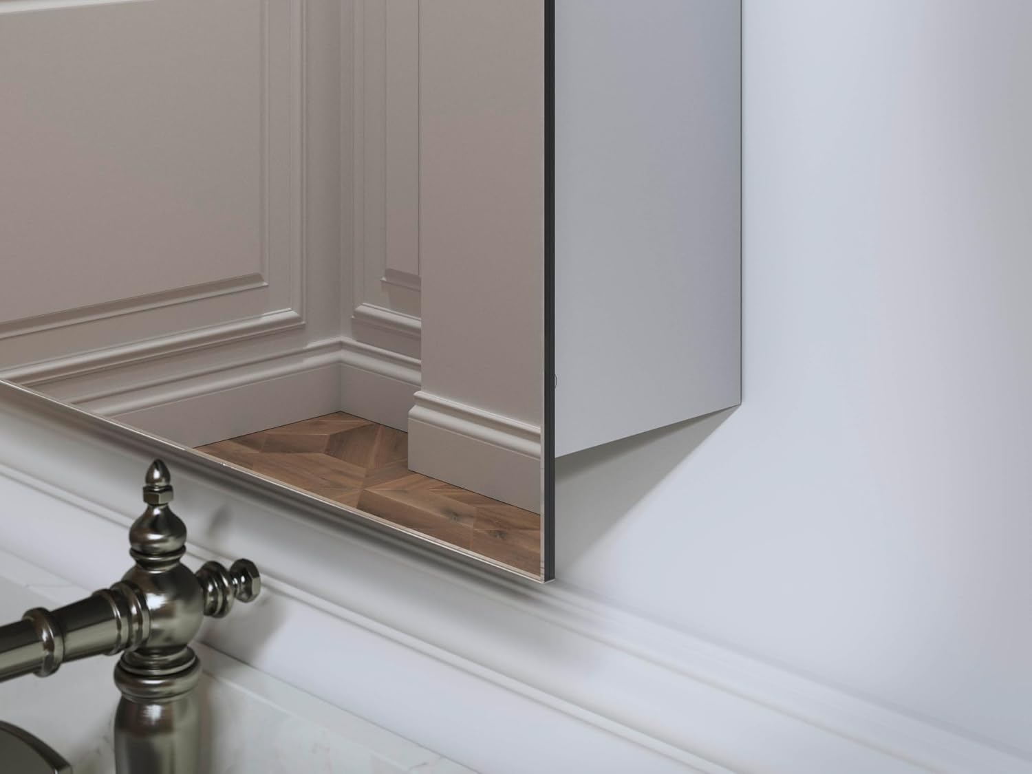 This medicine cabinet mirror box includes: Assembled mirrored cabinet side panel kit and installation hardware