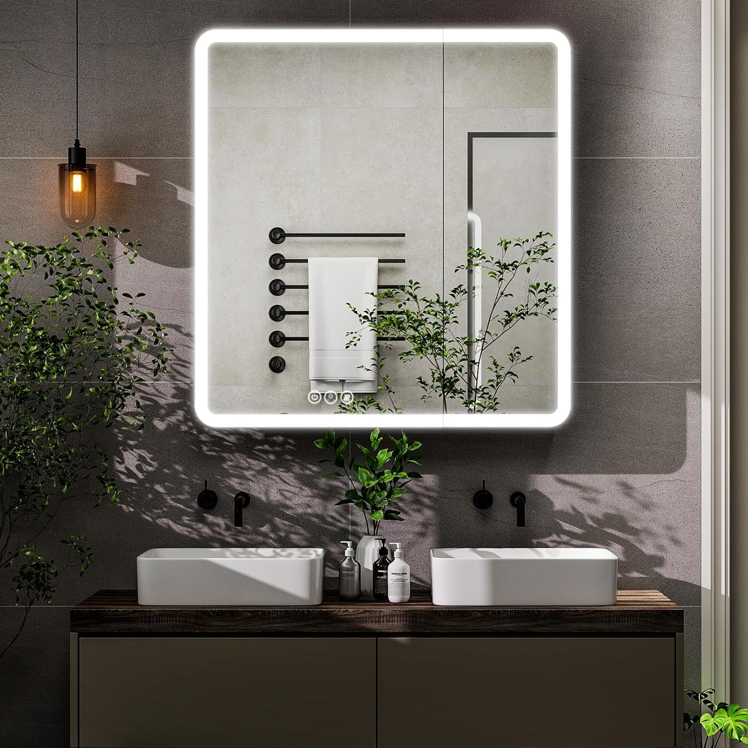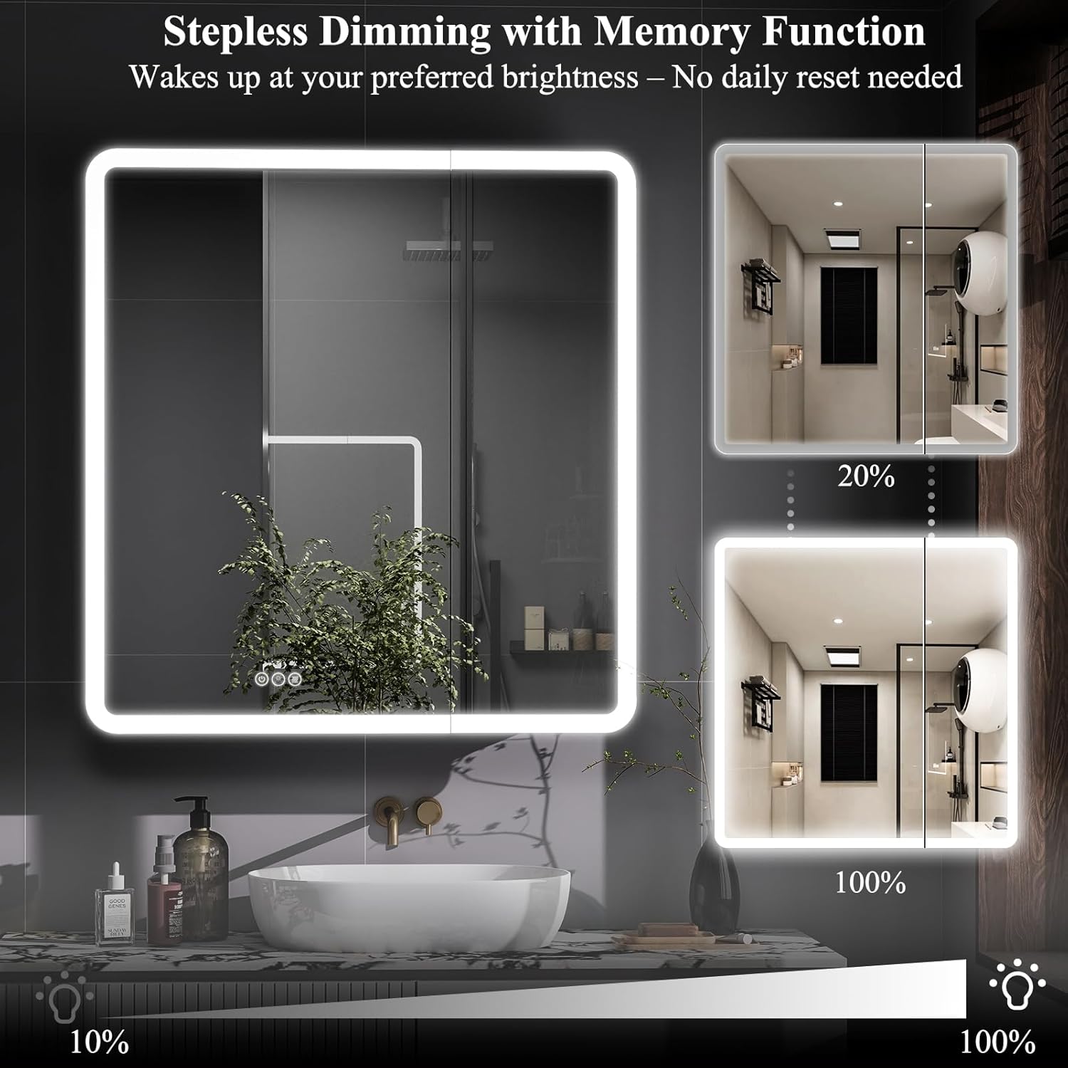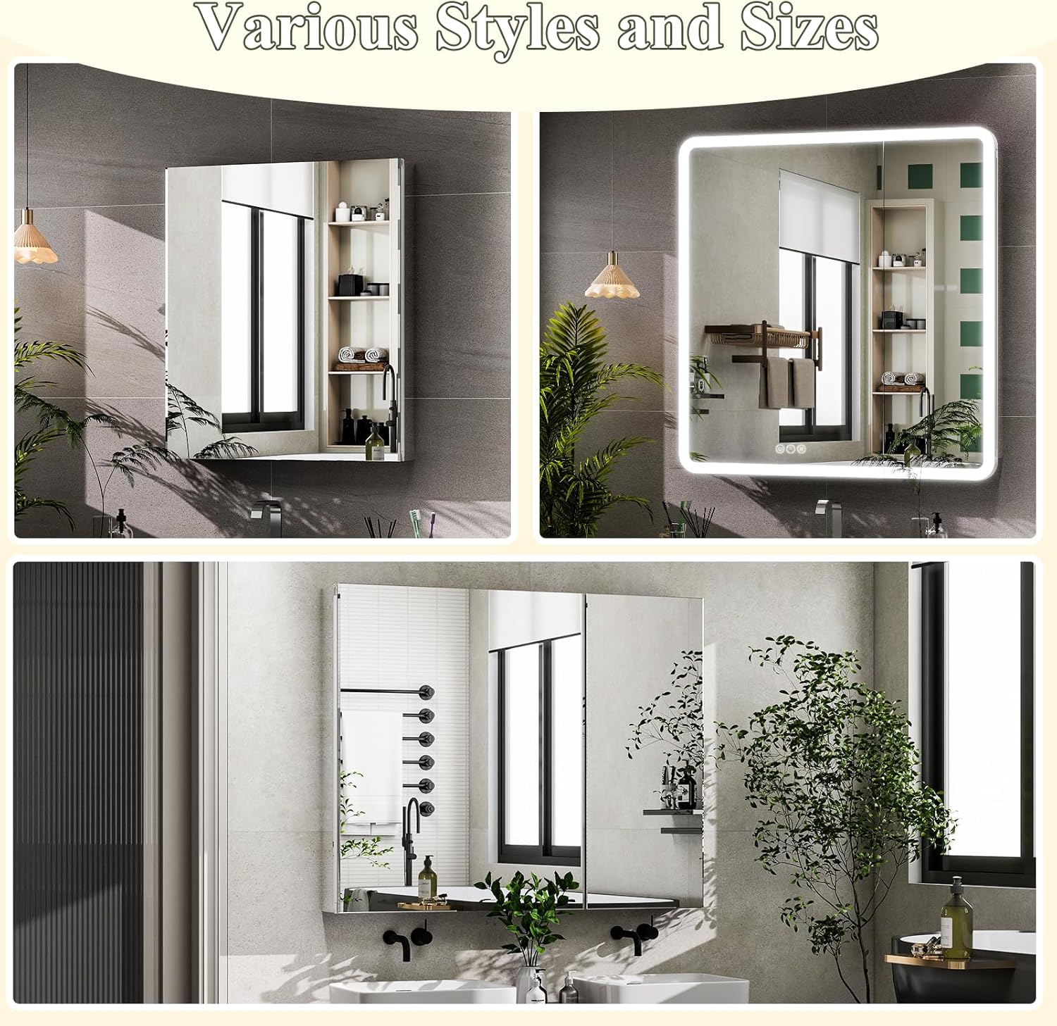 Quiet Design: this LED bathroom mirror Cabinet is made of aluminum alloy frame and fitted with high quality soft hinges to open and close the door without any obstruction, in addition, it is equipped with a damper to close the door safely, comfortably and noiselessly