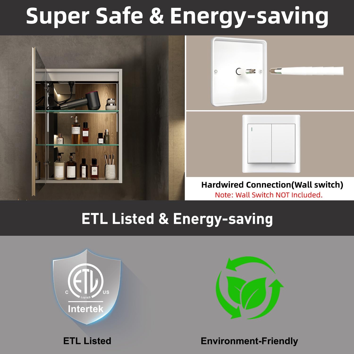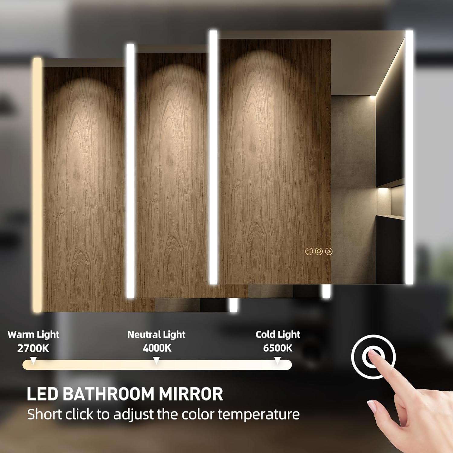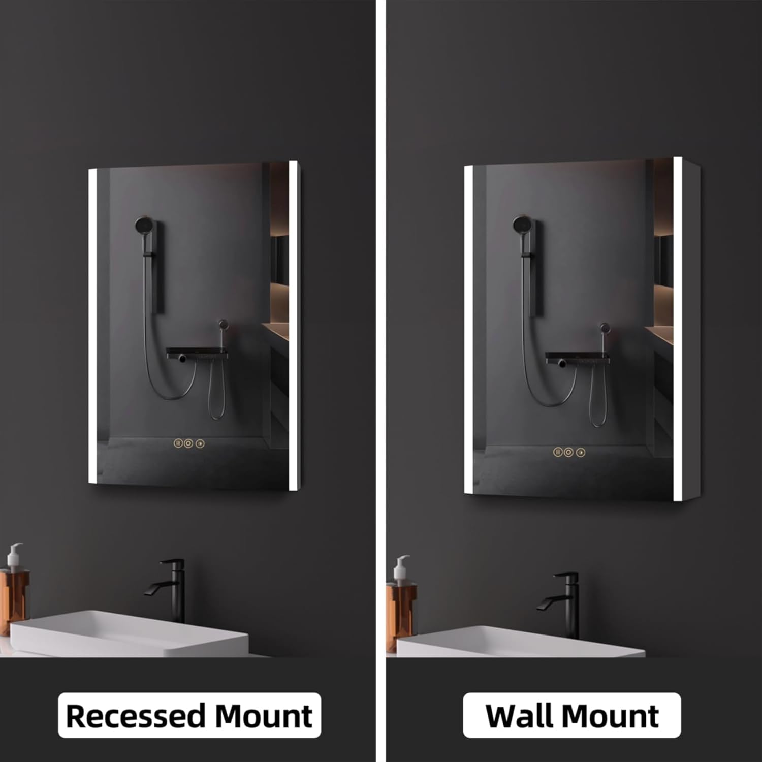 【Memory Function & Anti-fog Function】: The LEHkcvv cabinet mirror is controlled by smart touch buttons. With a convenient memory function it remembers your last light setting for added convenience. The built-in anti-fog function keeps your reflection clear even in steamy environments. Simply turn the anti-fog switch on or off as needed for energy-efficient performance