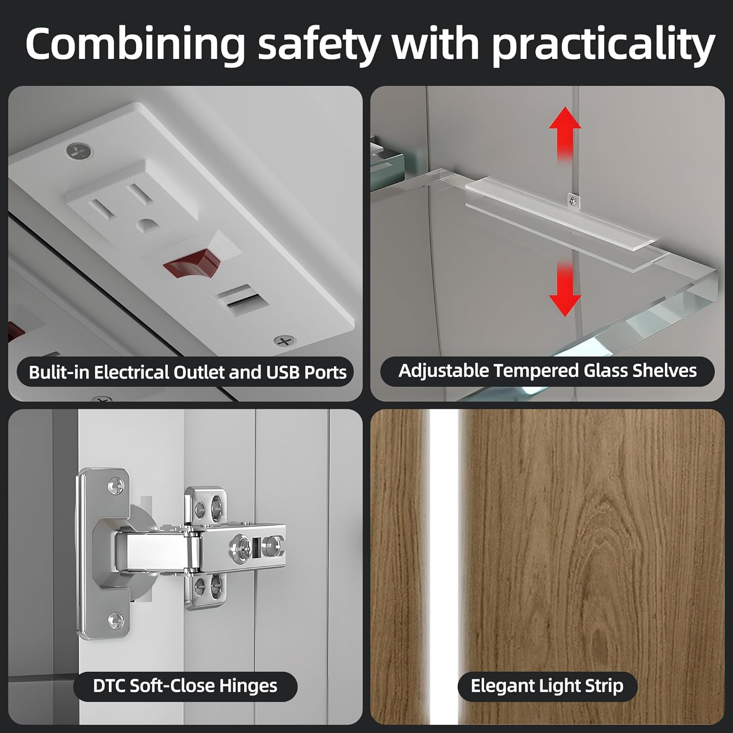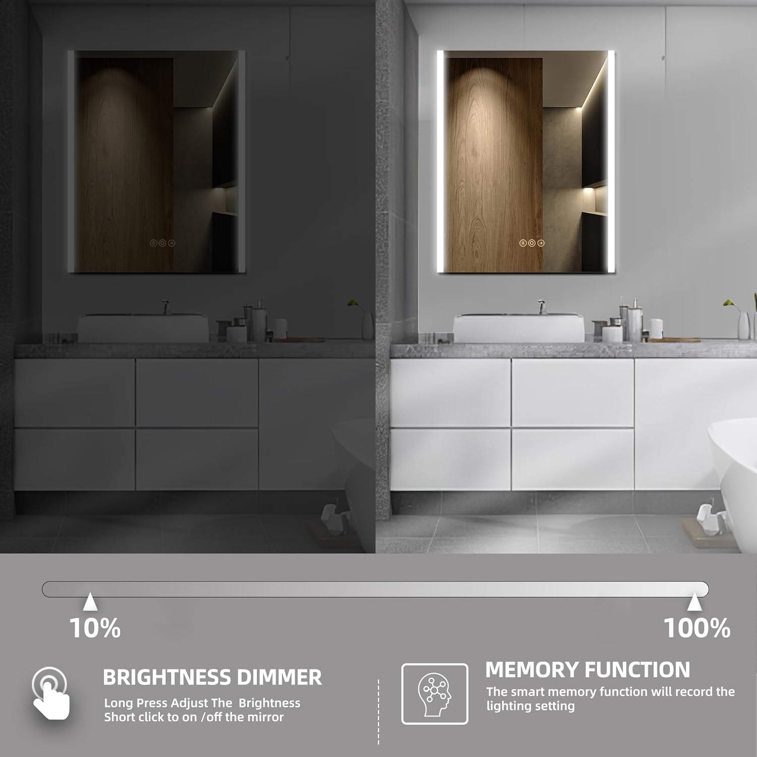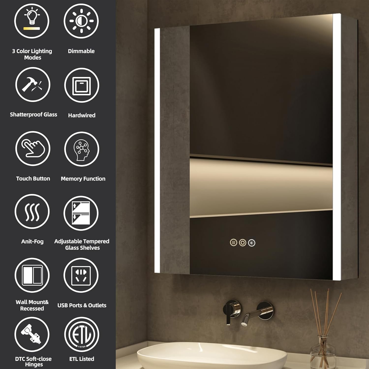 【Memory Function & Anti-fog Function】: The LEHkcvv cabinet mirror is controlled by smart touch buttons. With a convenient memory function it remembers your last light setting for added convenience. The built-in anti-fog function keeps your reflection clear even in steamy environments. Simply turn the anti-fog switch on or off as needed for energy-efficient performance